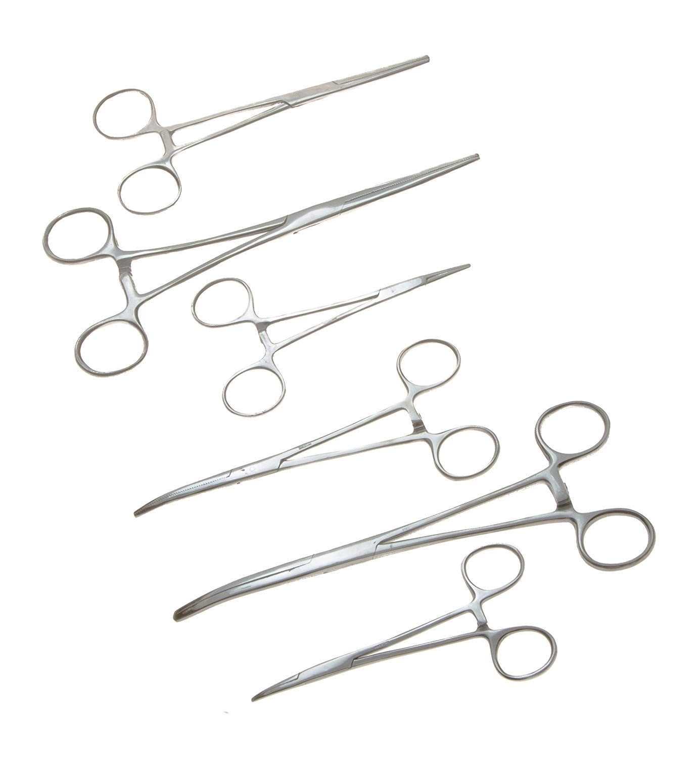 Apical 6-Pc Hemostat Forceps Set Stainless Steel Straight & Curved Clamps Multi-