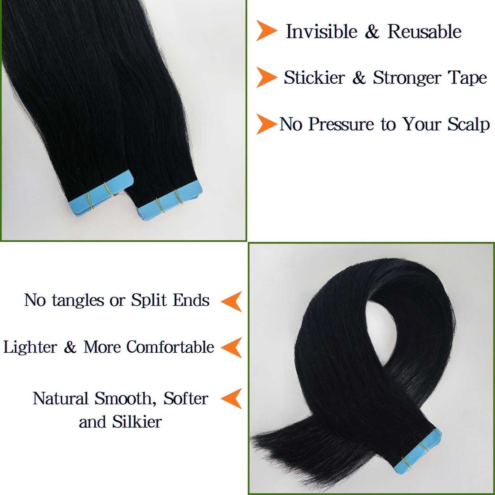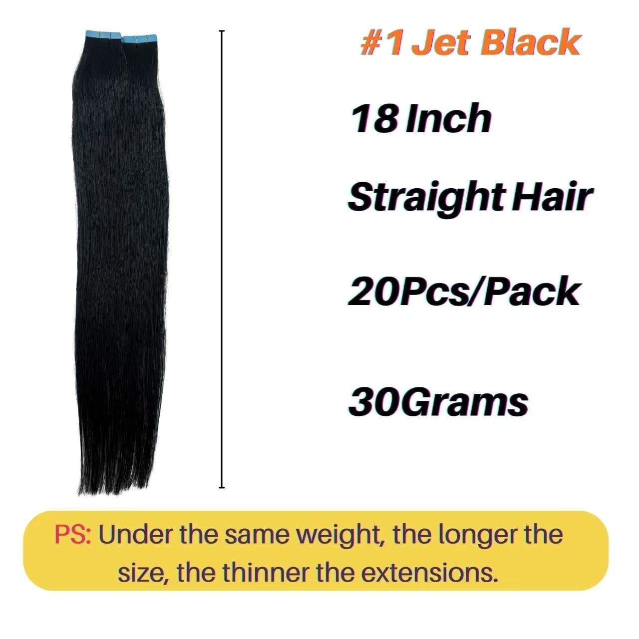 Black Tape in Human Hair Extensions Remy Invisible Skin Weft 20pcs