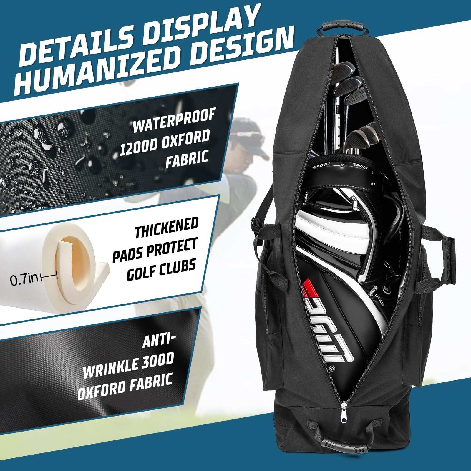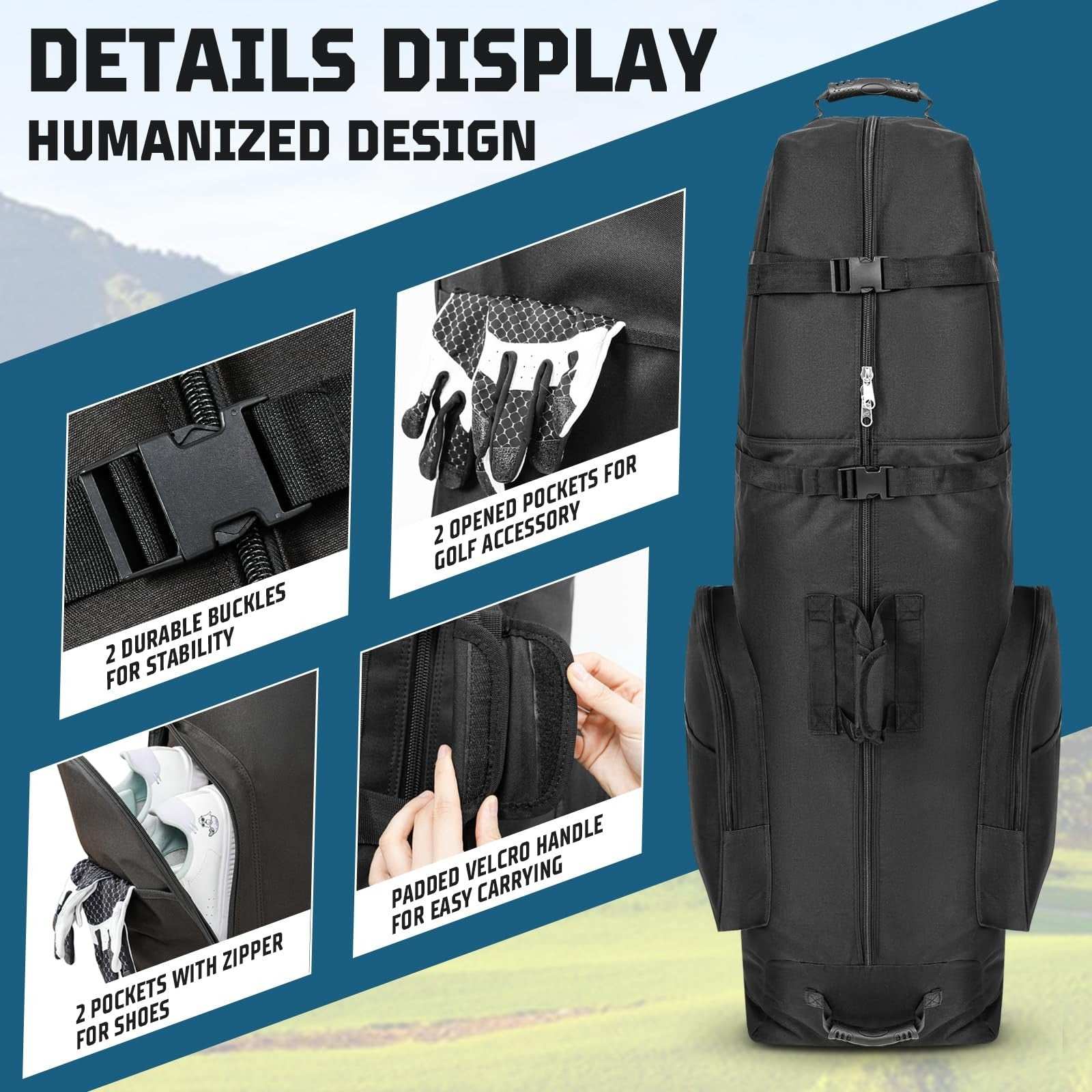 DAREKUKU Golf Travel Bag w/ Wheels, Club Cover, 4 Pockets, Airline Approved