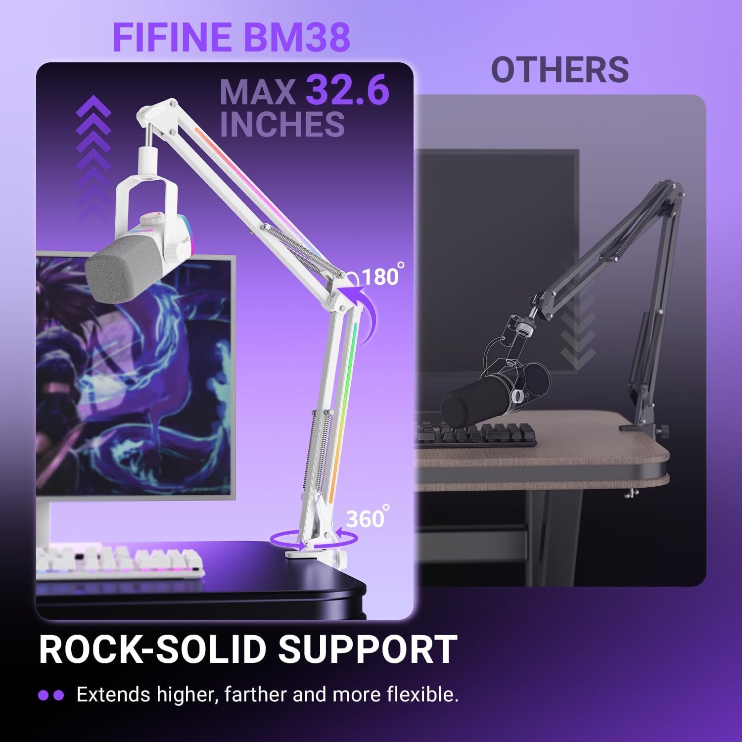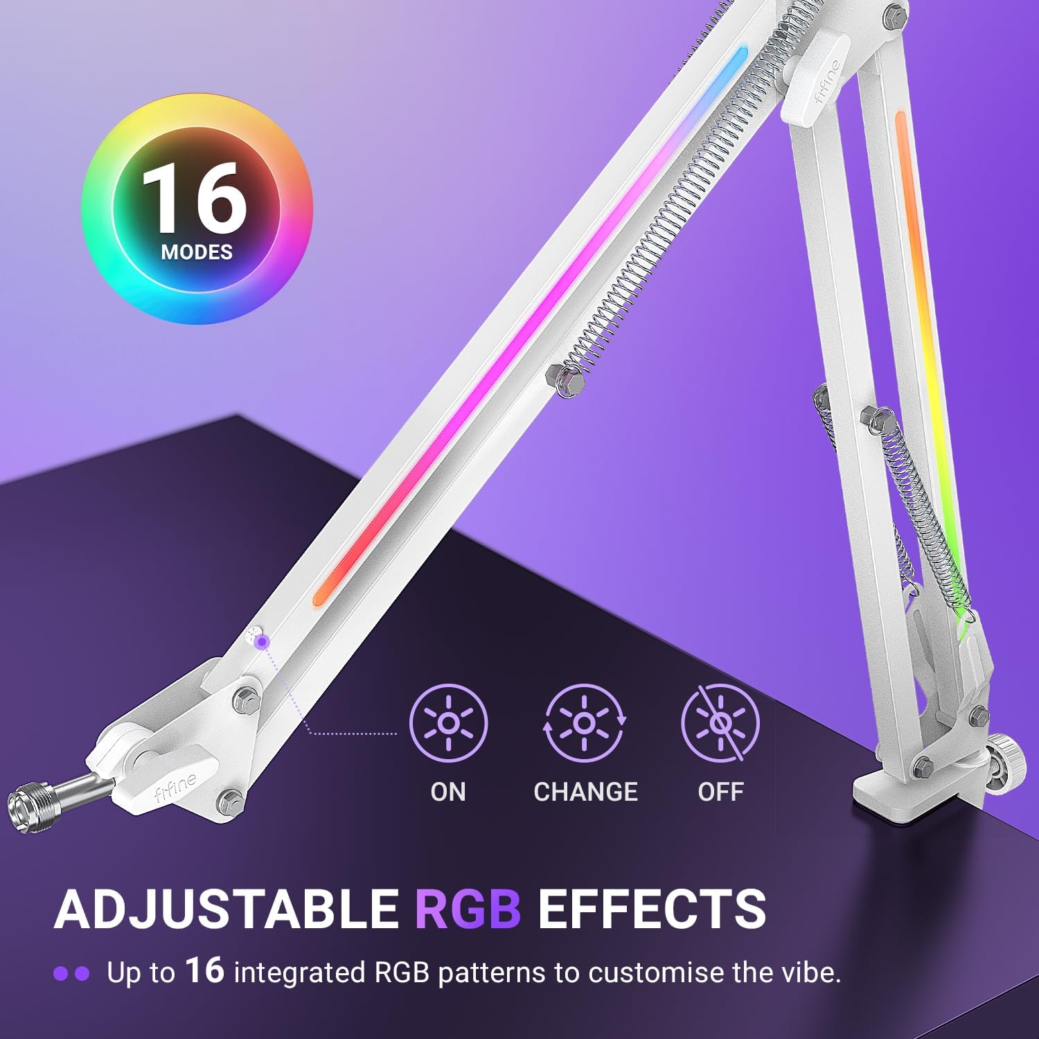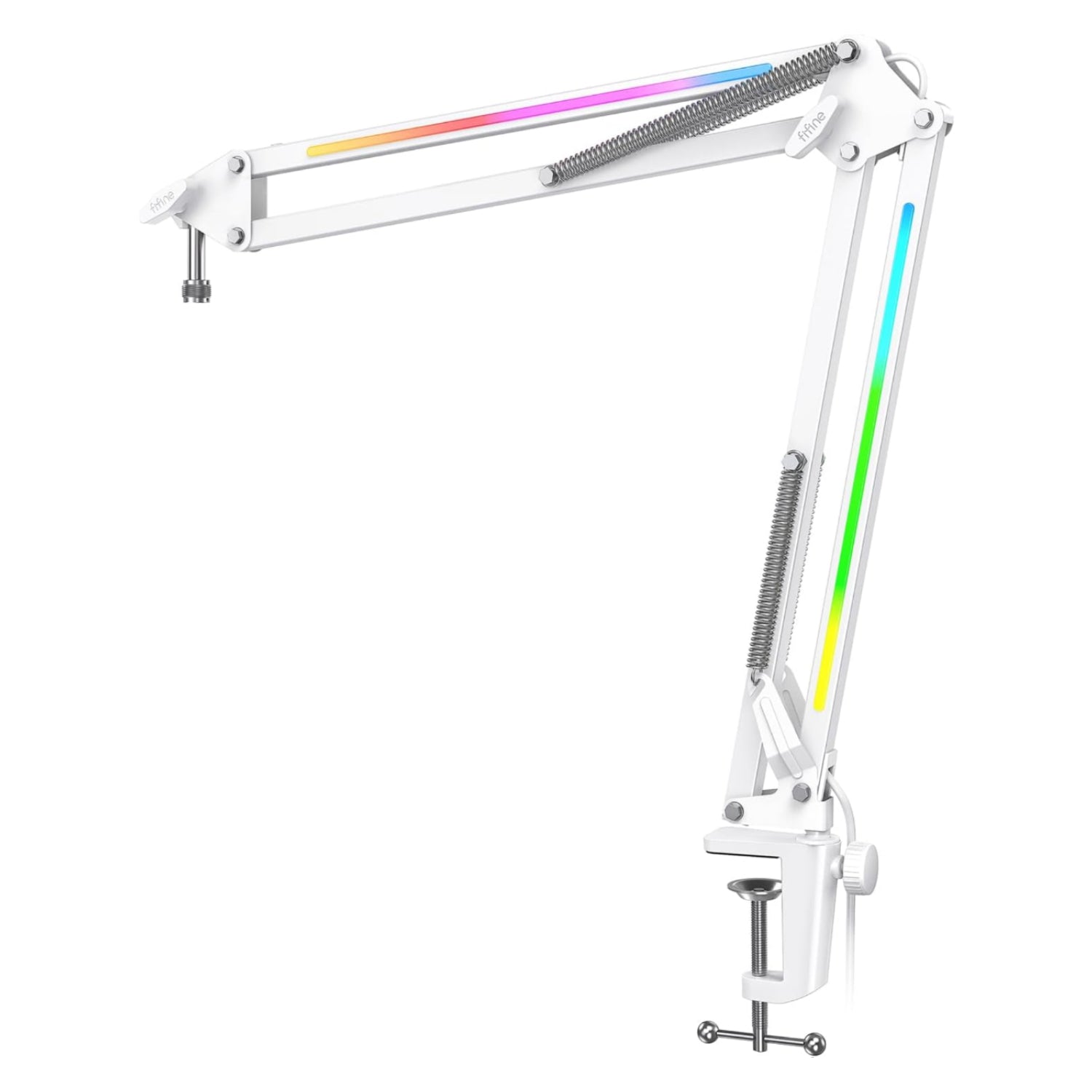 FIFINE Microphone Boom Arm, Heavy Duty Mic Arm with Controllable RGB Light,C-Clamp