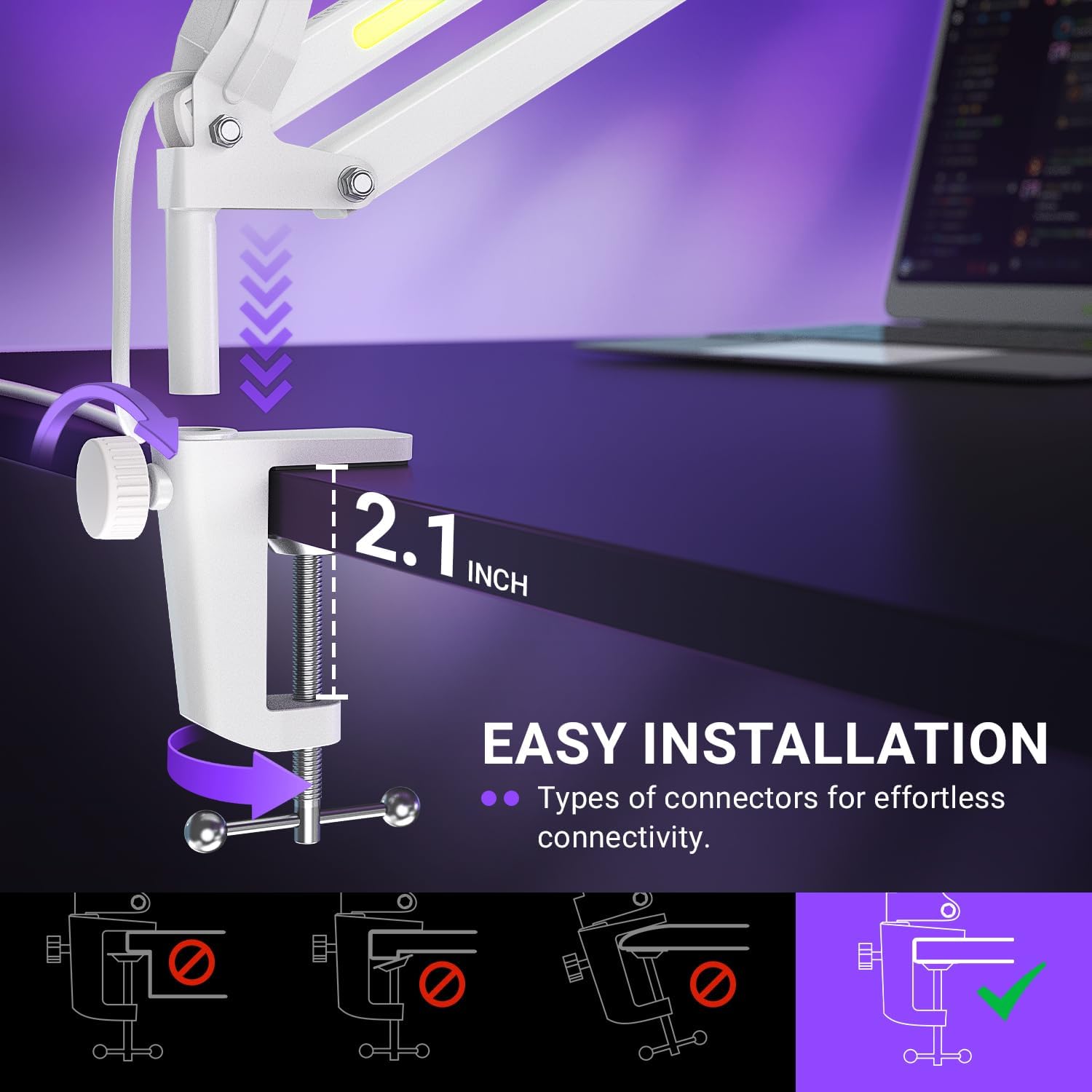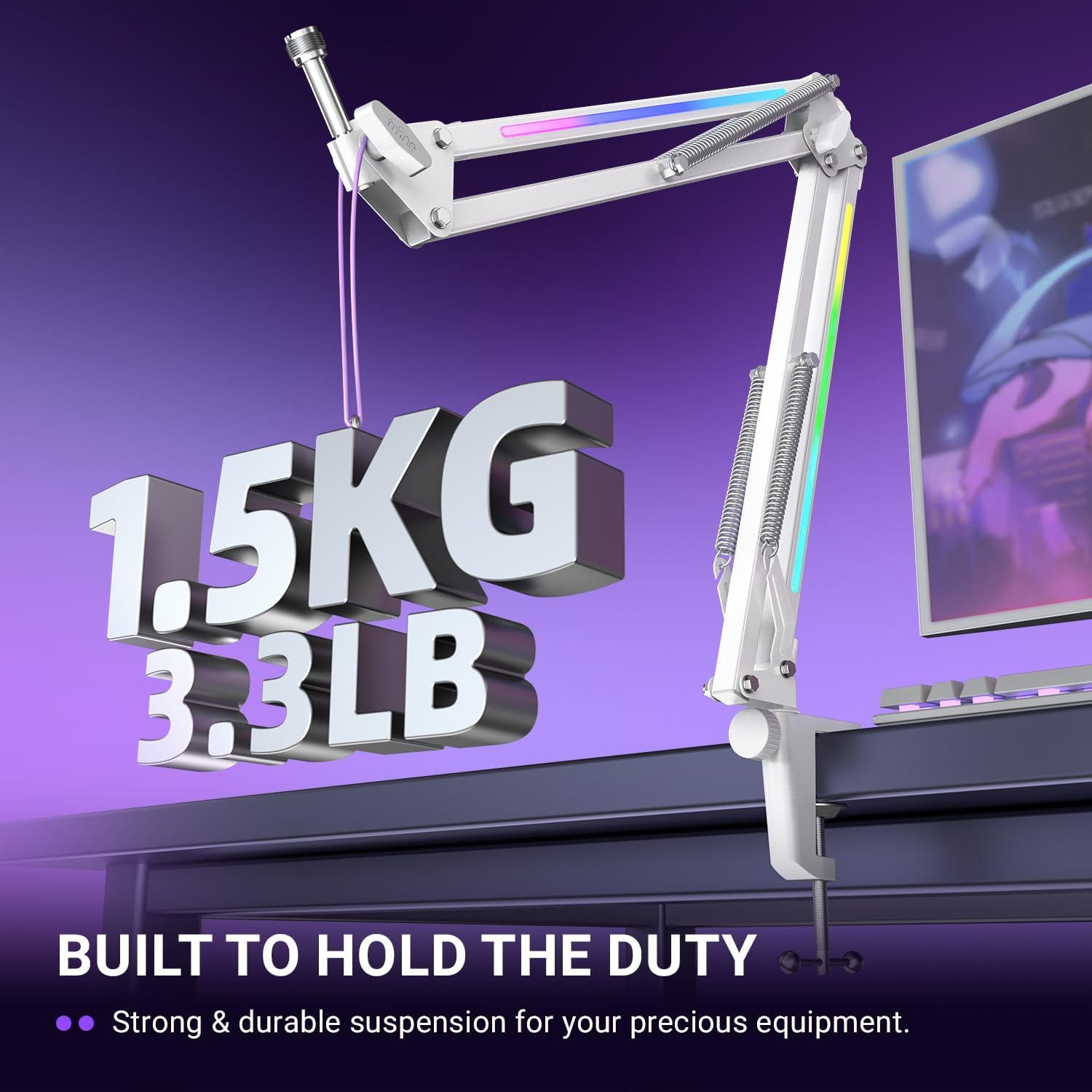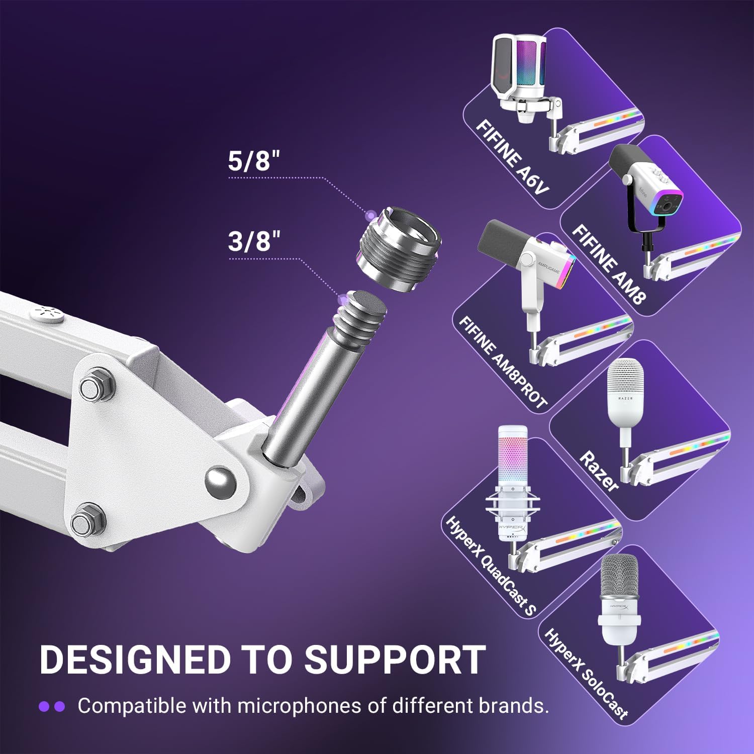 FIFINE Microphone Boom Arm, Heavy Duty Mic Arm with Controllable RGB Light,C-Clamp