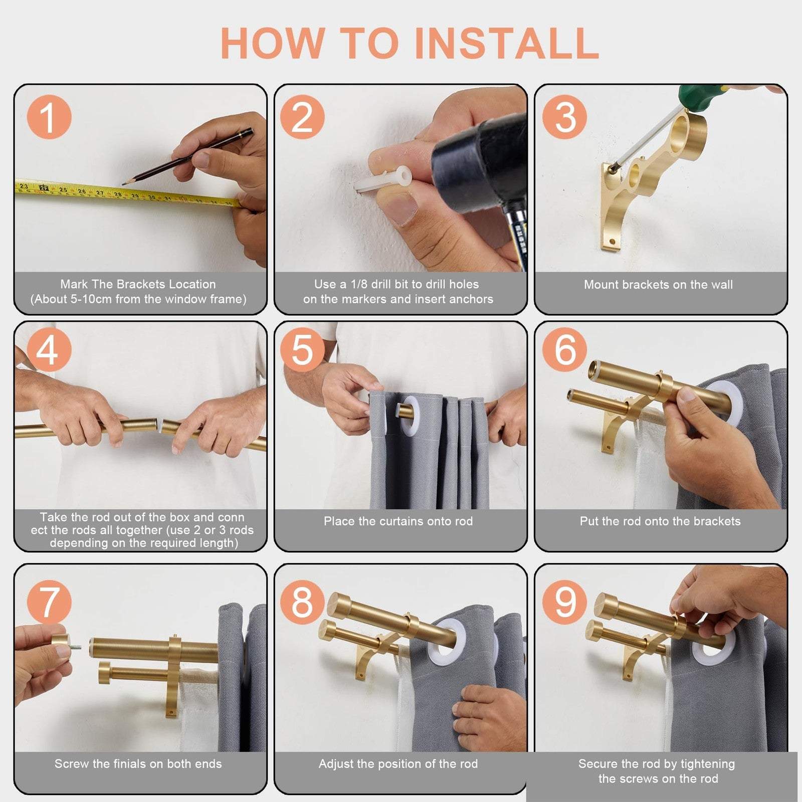 Lwiiom Double Curtain Rods, 36-72" Warm Gold, Aluminum End Cap & Brackets