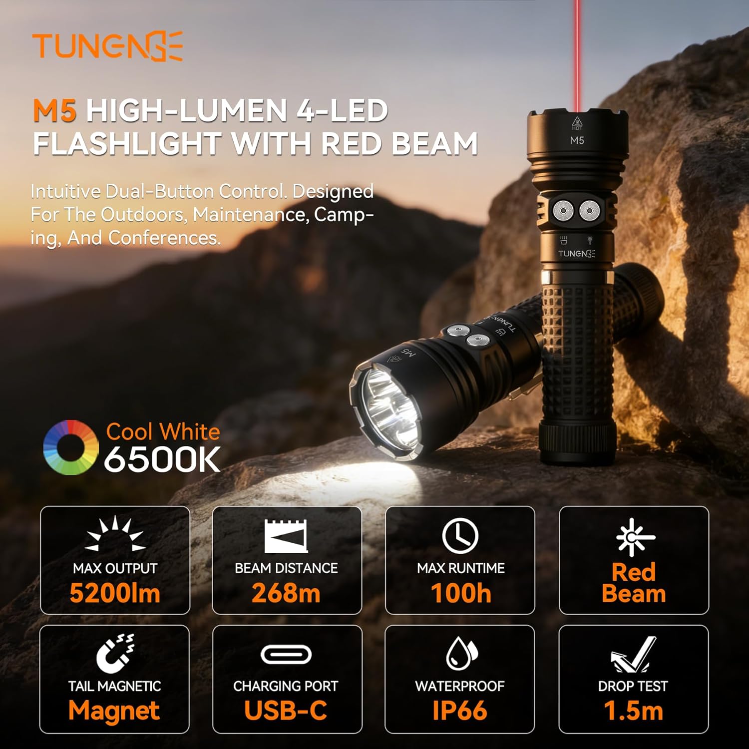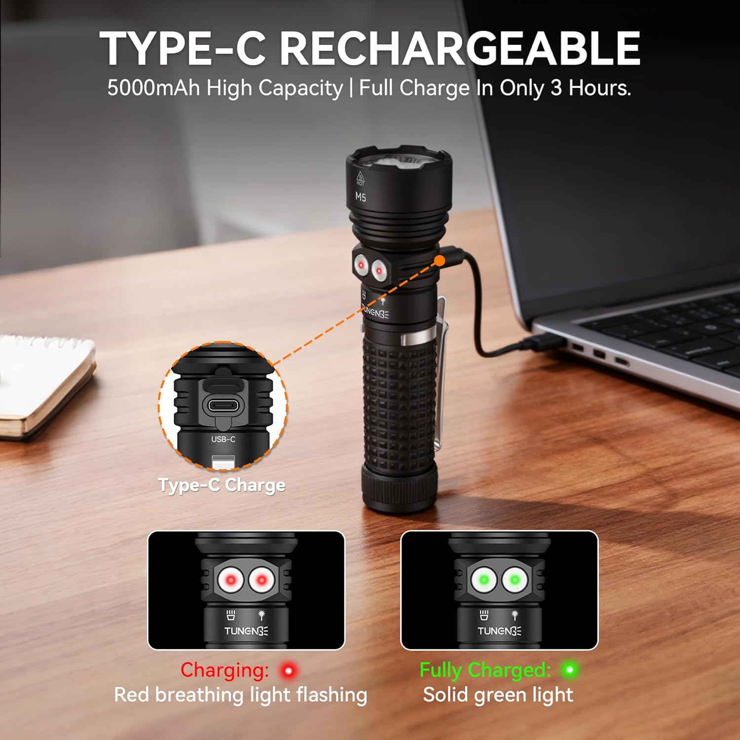 M5 5200 High Lumen LED Flashlight, USB-C Rechargeable Holding Flashlights g