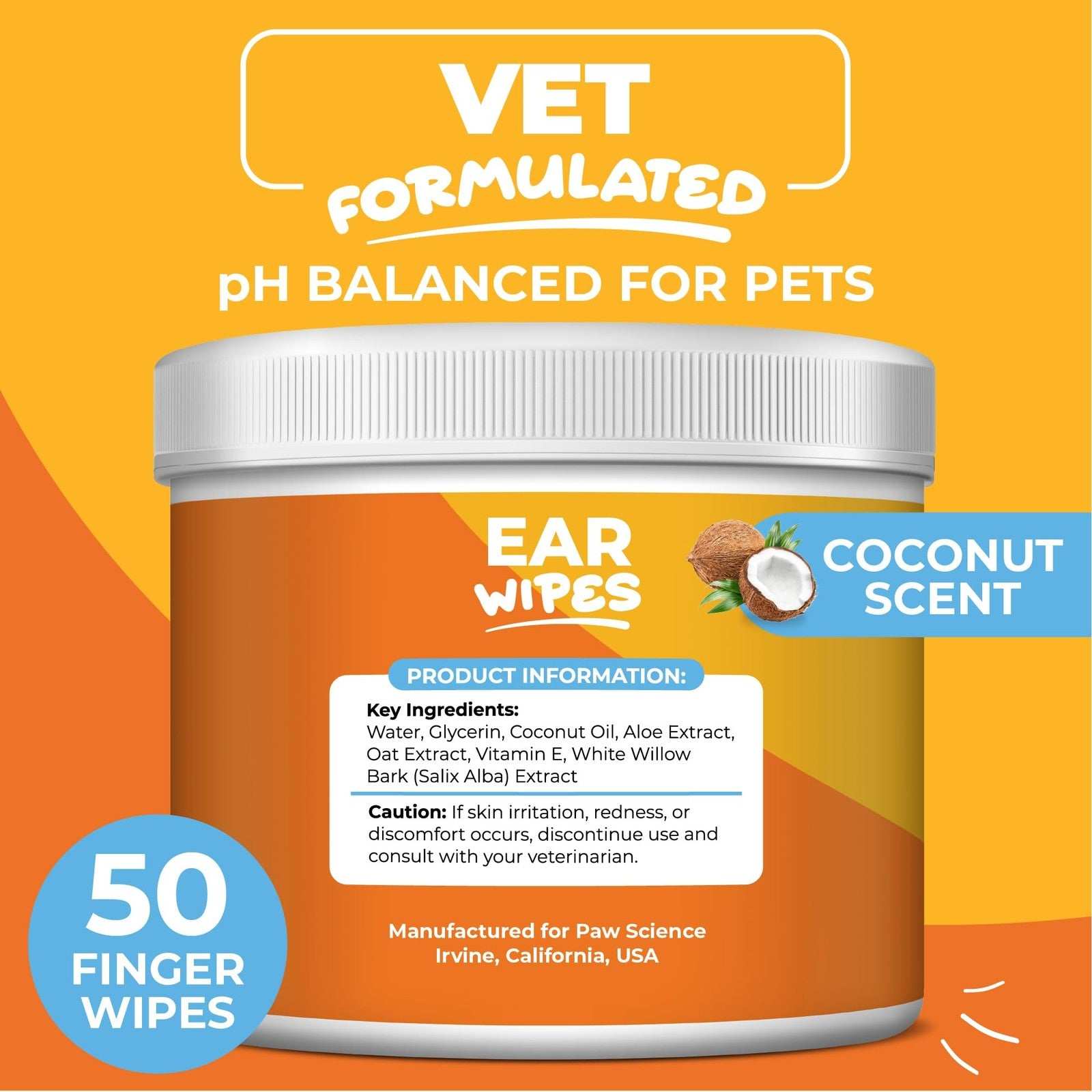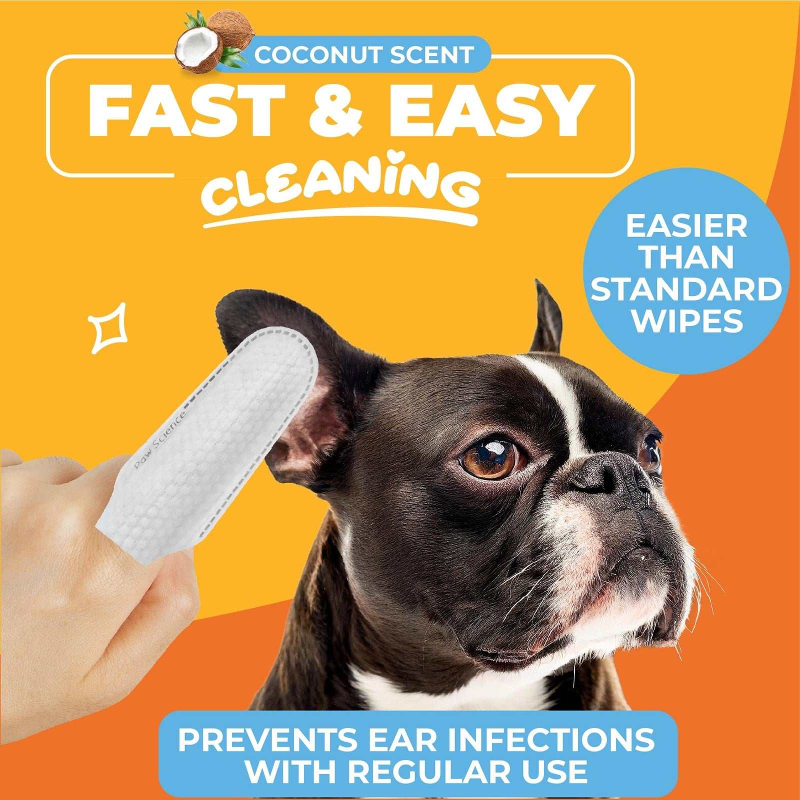 Paw Science Dog/Cat Ear Cleaner Finger Wipes - Soothes Itchy Ears & Eliminates O