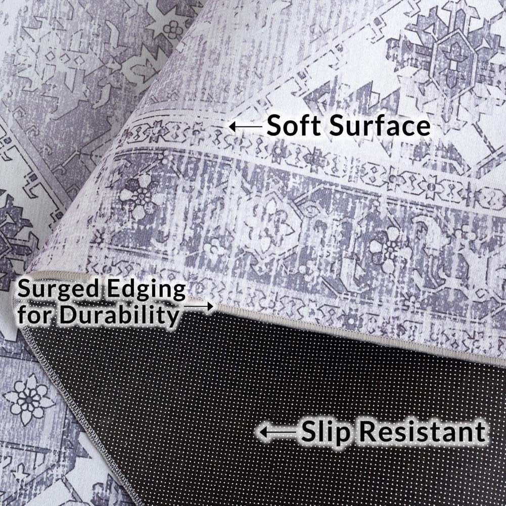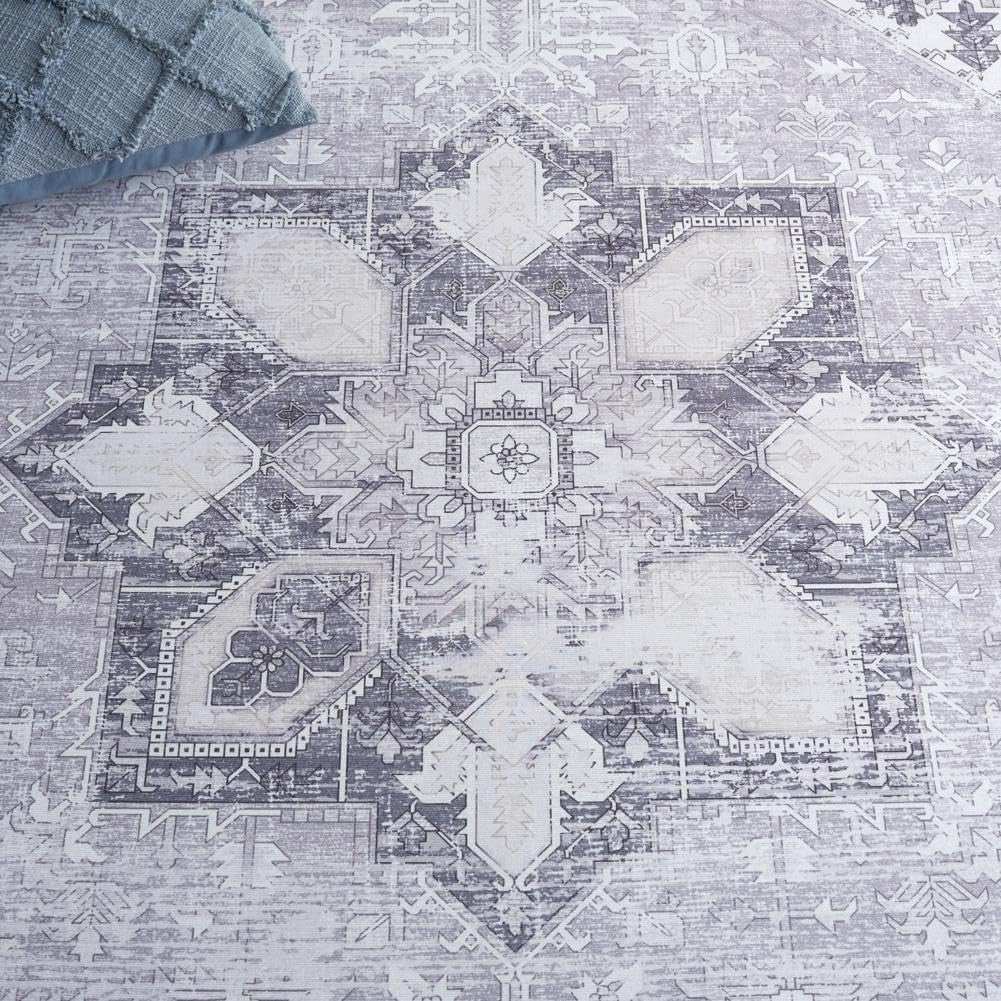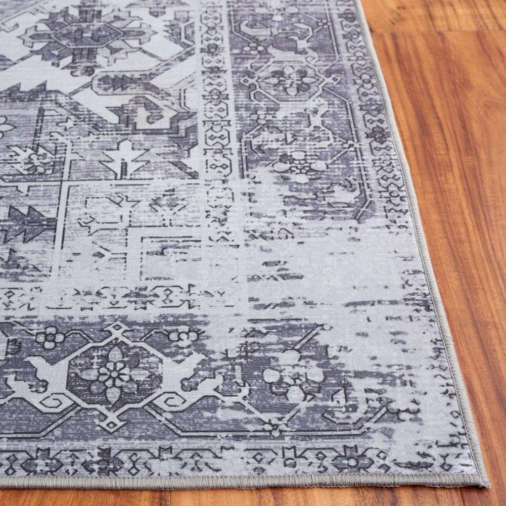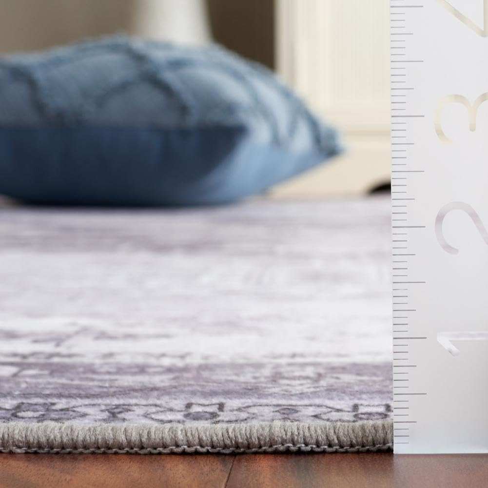 SAFAVIEH Washable Rug Tucson 4ft Round Light Grey Slip Resistant Easy Care