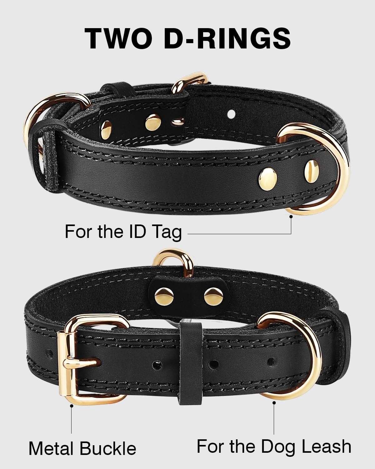 Joytale Leather Dog Collar, Large Dogs, Heavy Duty, Soft, Genuine Cowhide