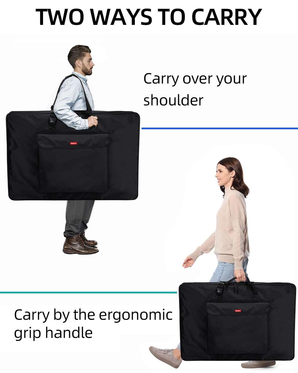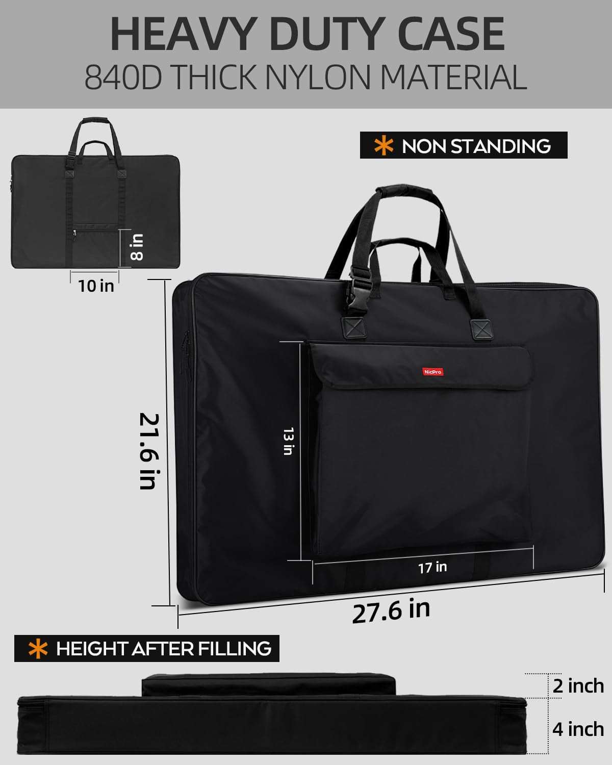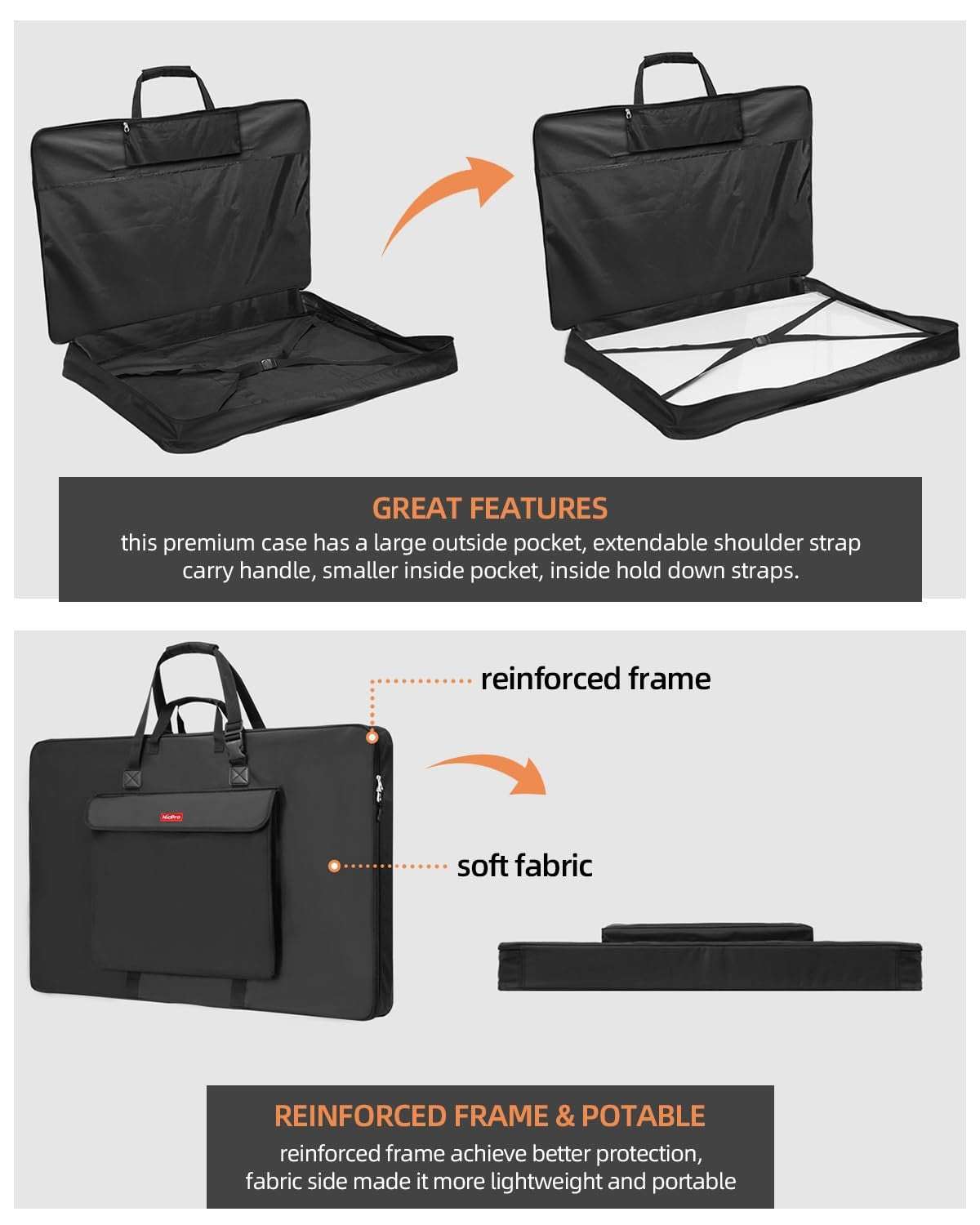 Nicpro Art Portfolio Bag 20x26", Waterproof Nylon Artist Case w/ Reinforced Fram