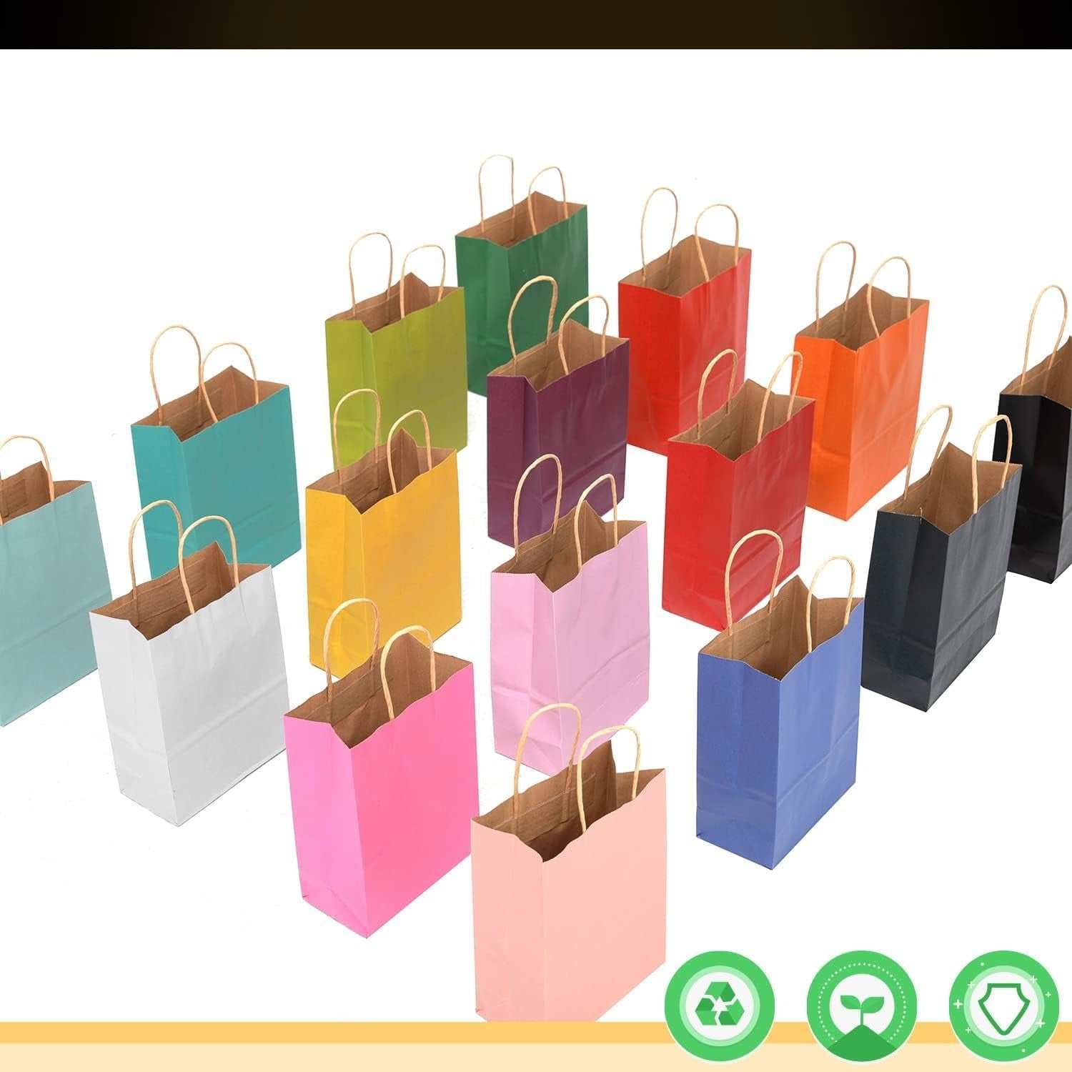 qiqee 32-Pk Large Kraft Gift Bags w/ Handles 13"x10"x5" - 16 Solid Colors