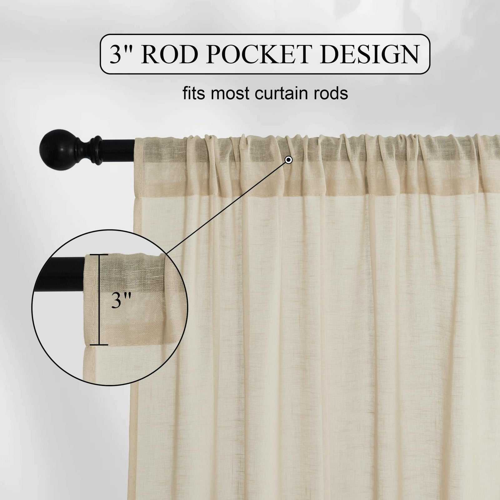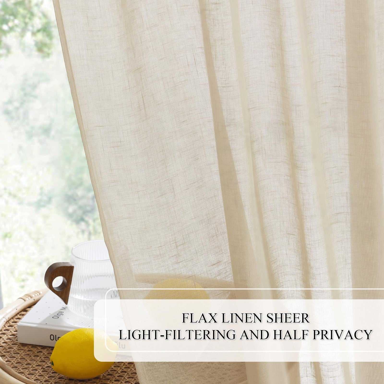 RYB HOME Outdoor Sheer Curtains for Patio, Flax Linen, Waterproof, 52"x108"