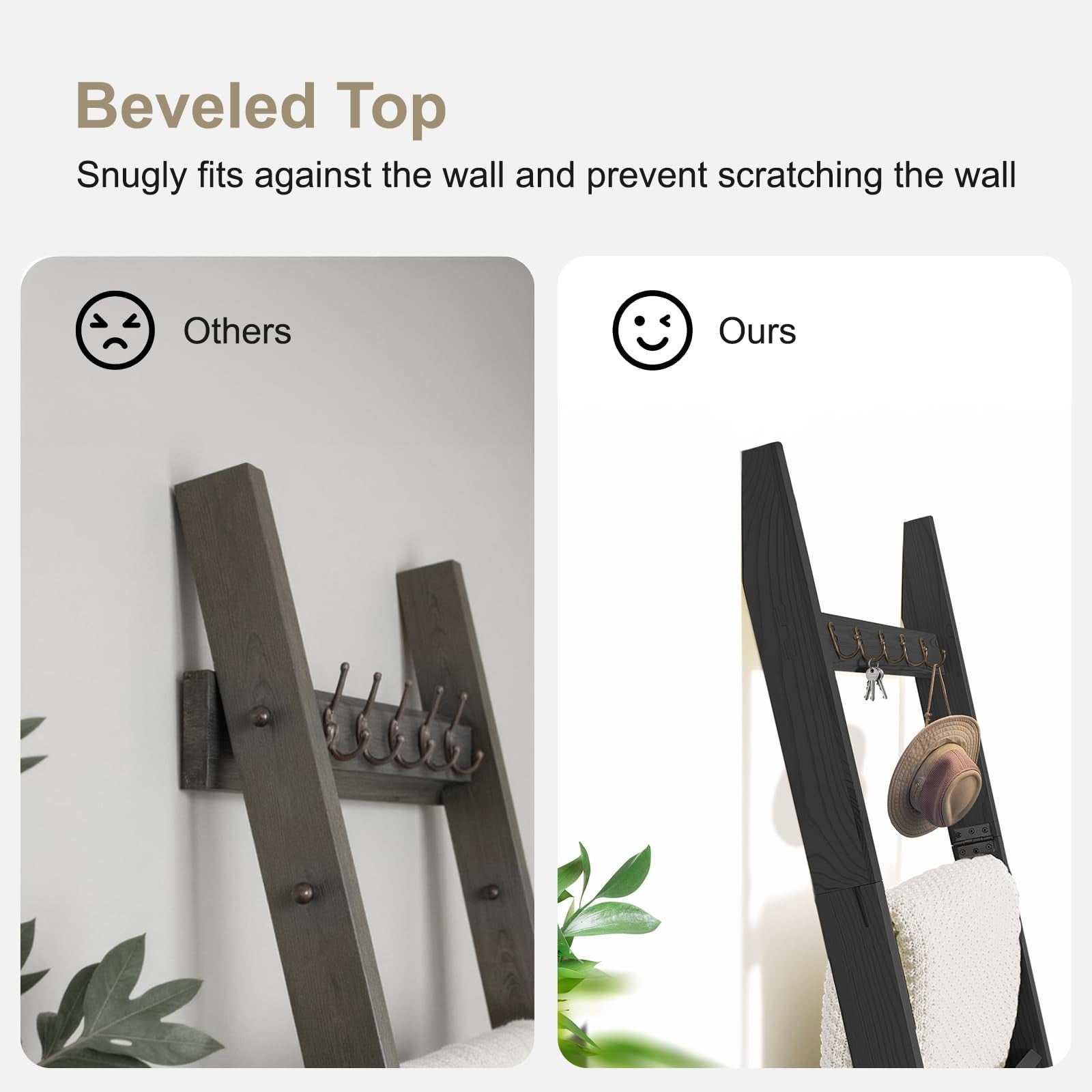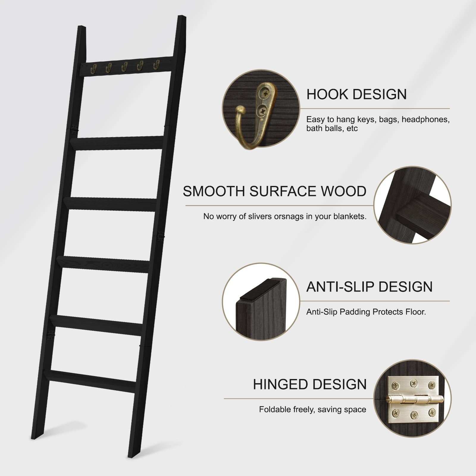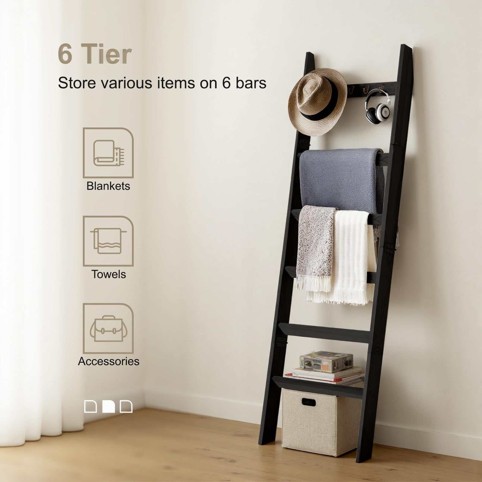 TEAKMAMA 5.4 FT 6-Tier Pine Wood Blanket Ladder - Wall Leaning Towel Quilt Rack