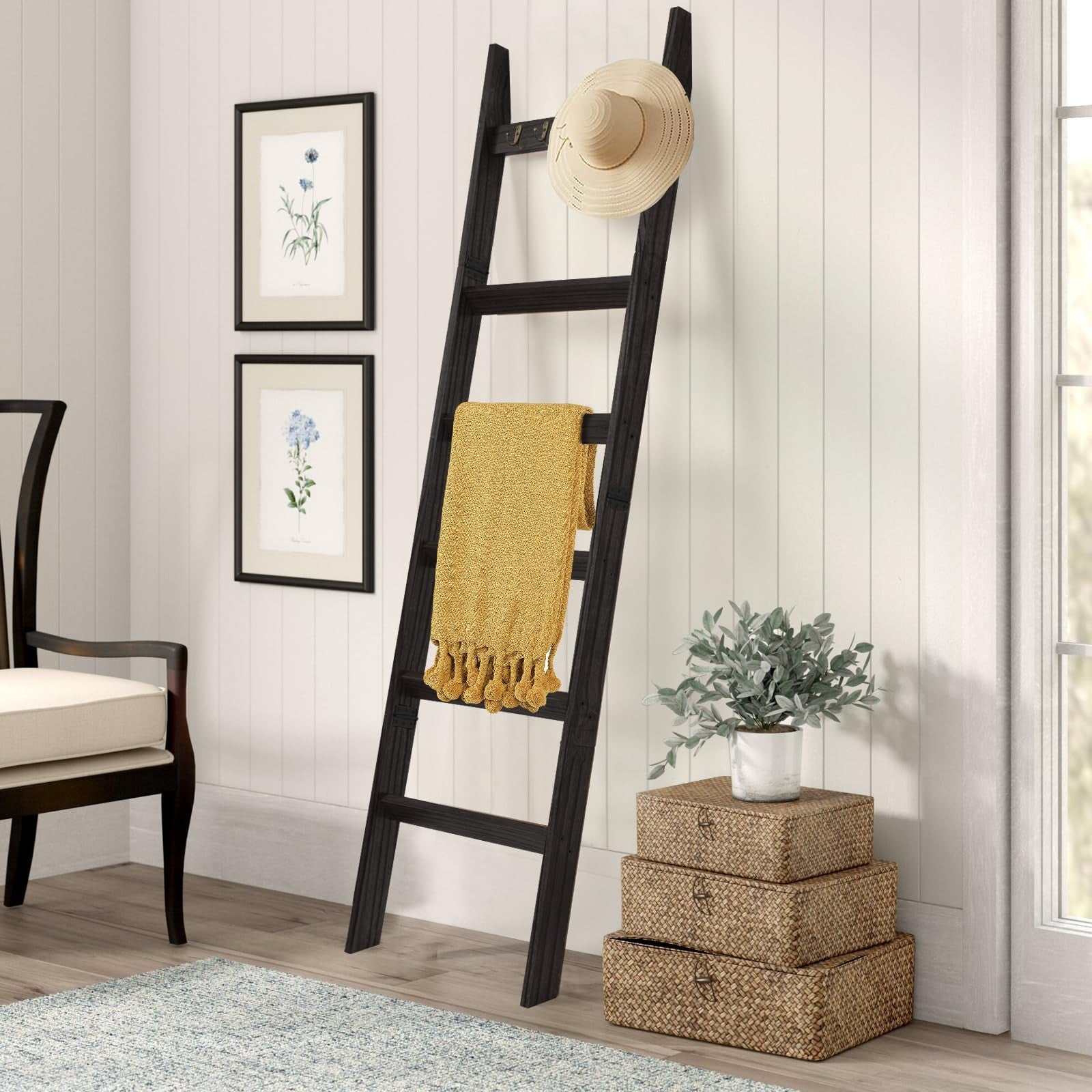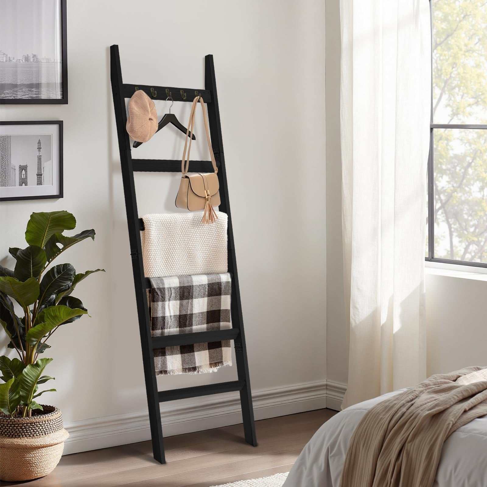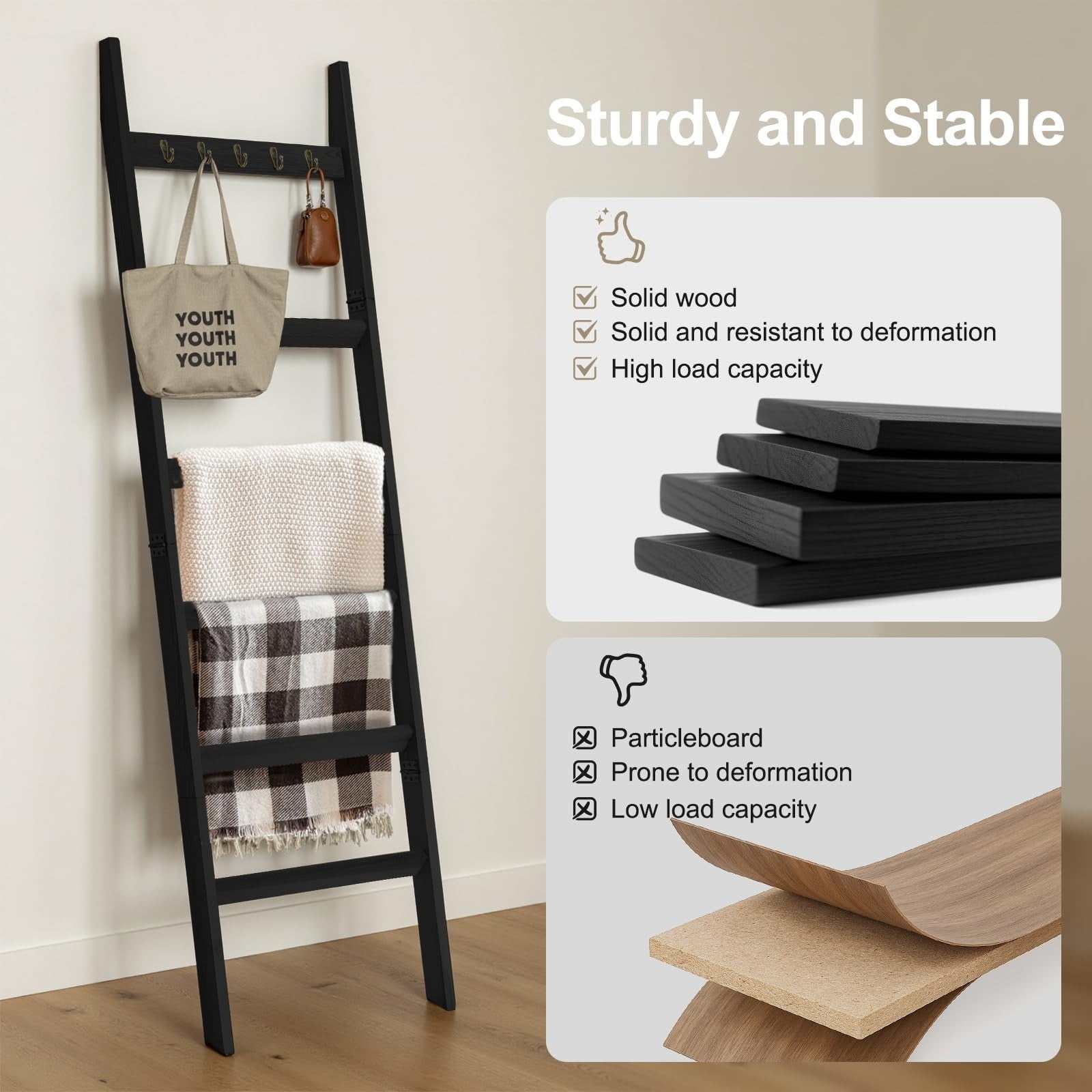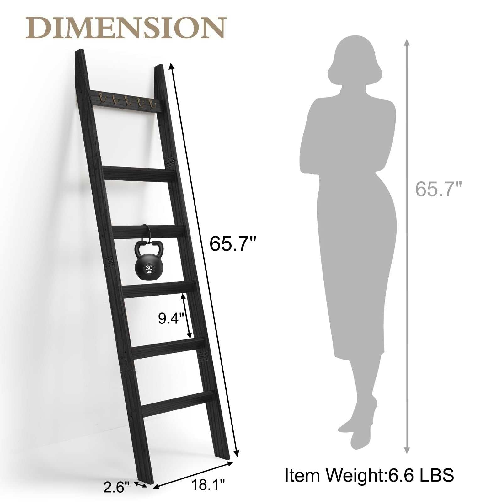 TEAKMAMA 5.4 FT 6-Tier Pine Wood Blanket Ladder - Wall Leaning Towel Quilt Rack