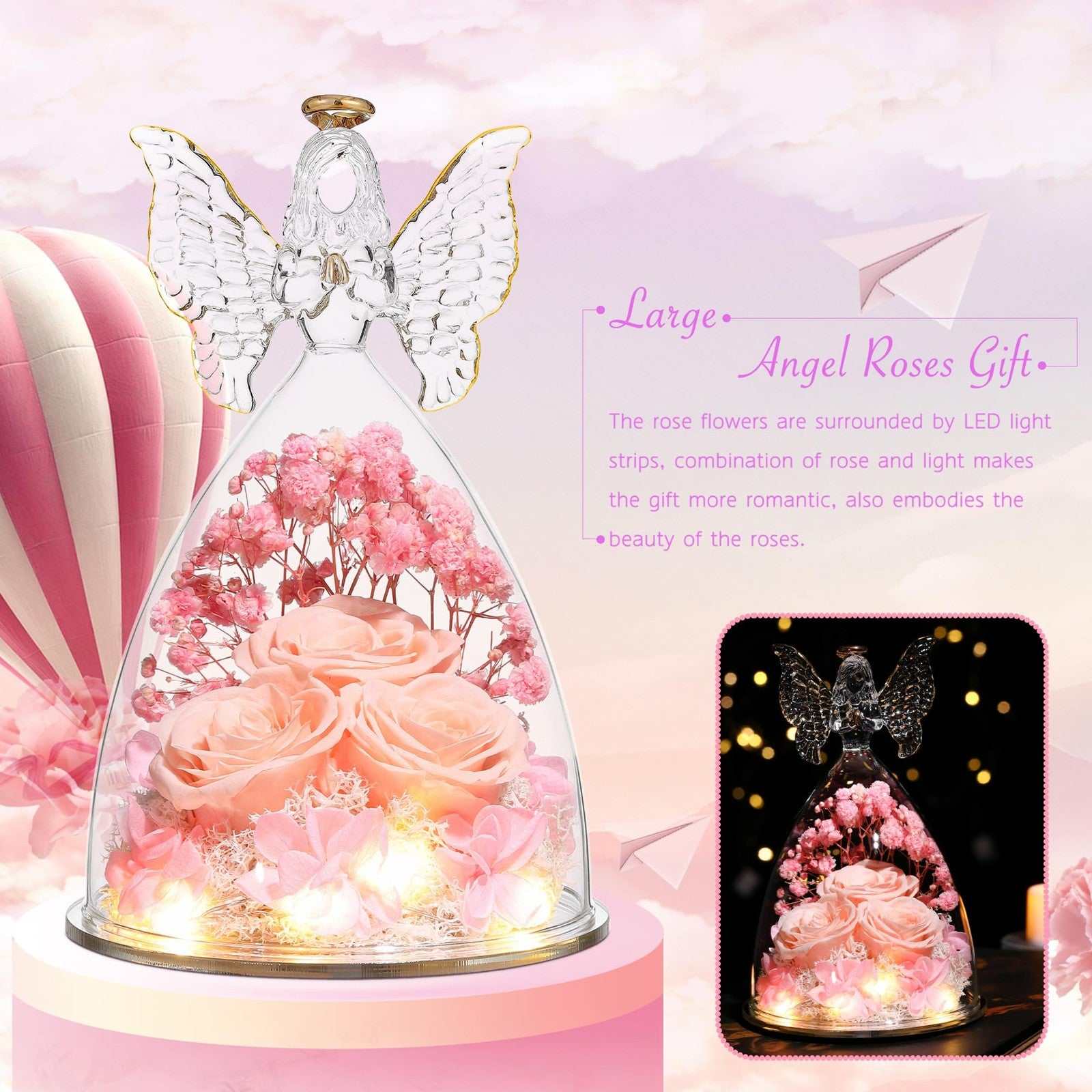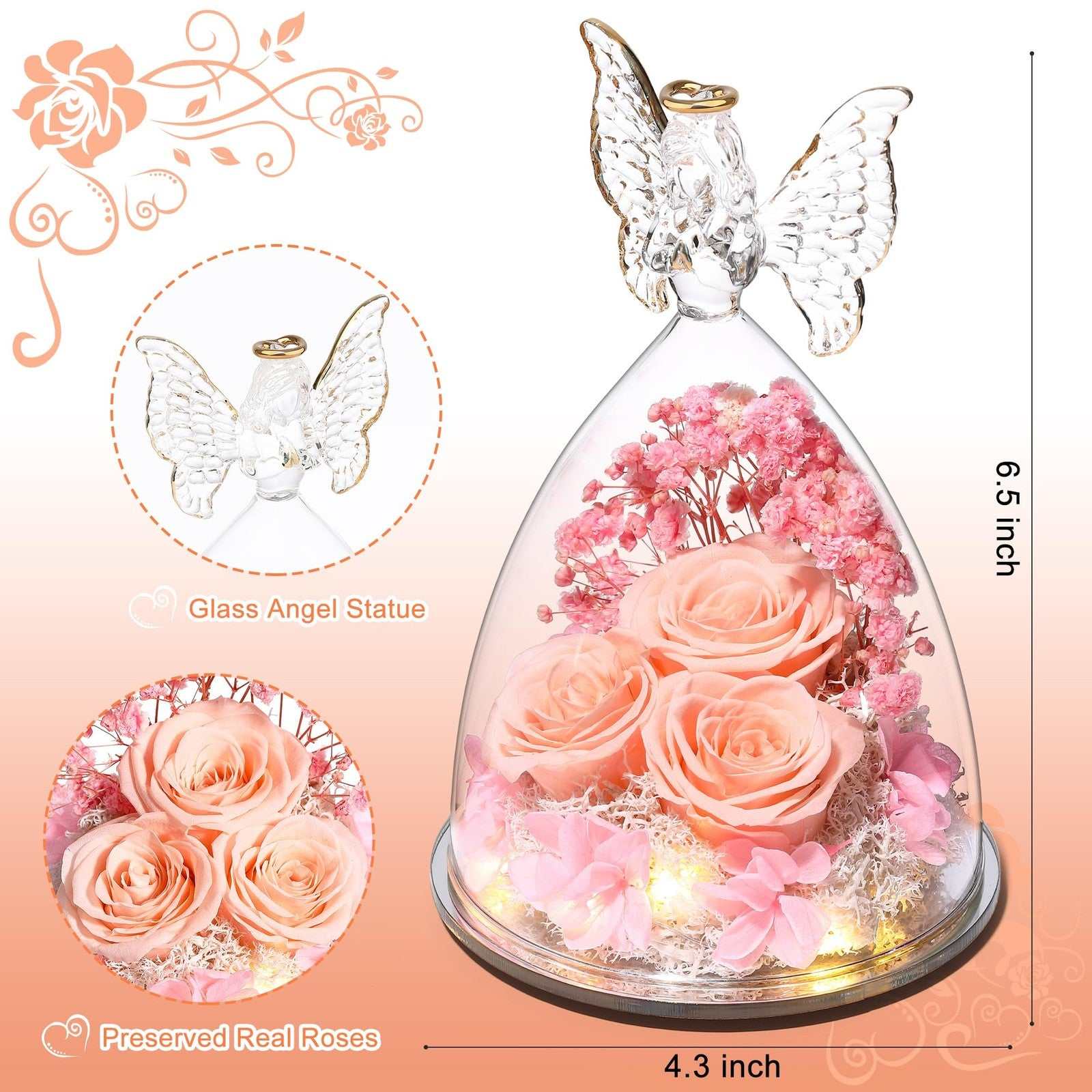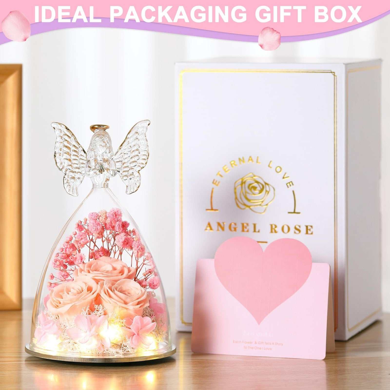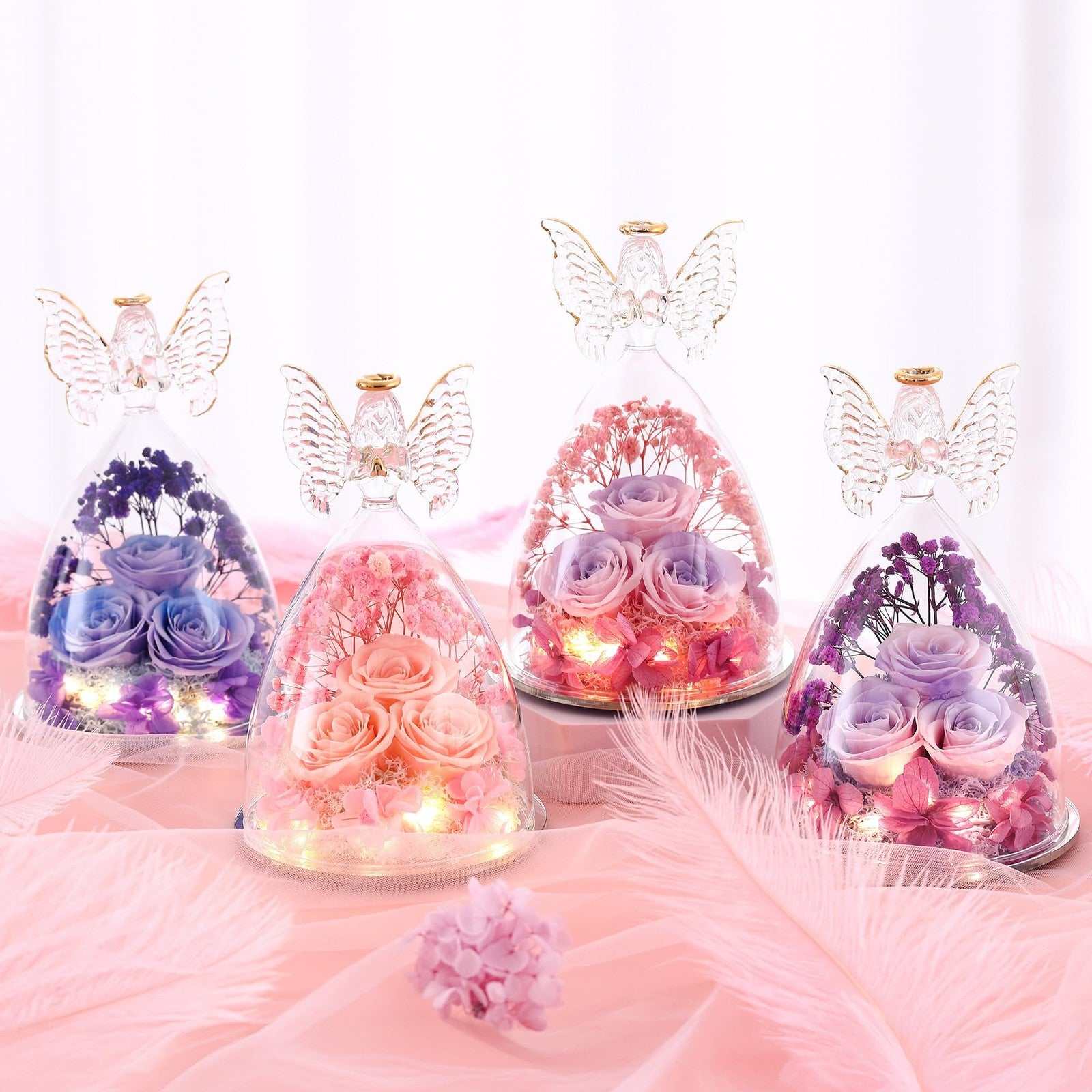Tiaronics Preserved Rose Angel Figurine - Real Flower Gift for Women
