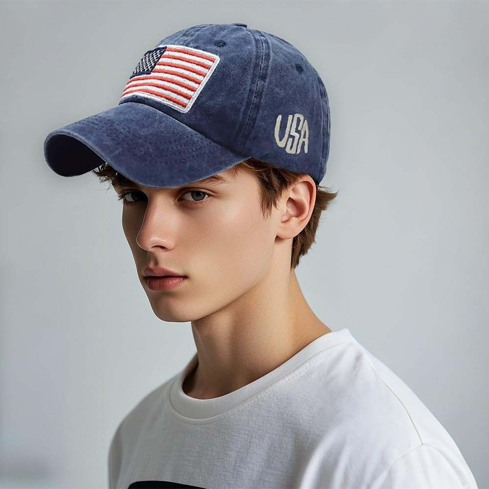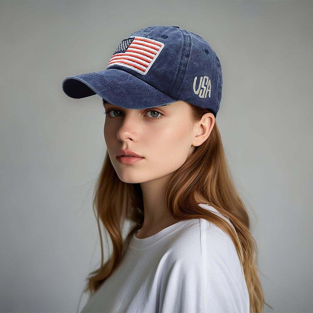 USA Flag Baseball Cap for Men & Women - Washed, Adjustable, Embroidery