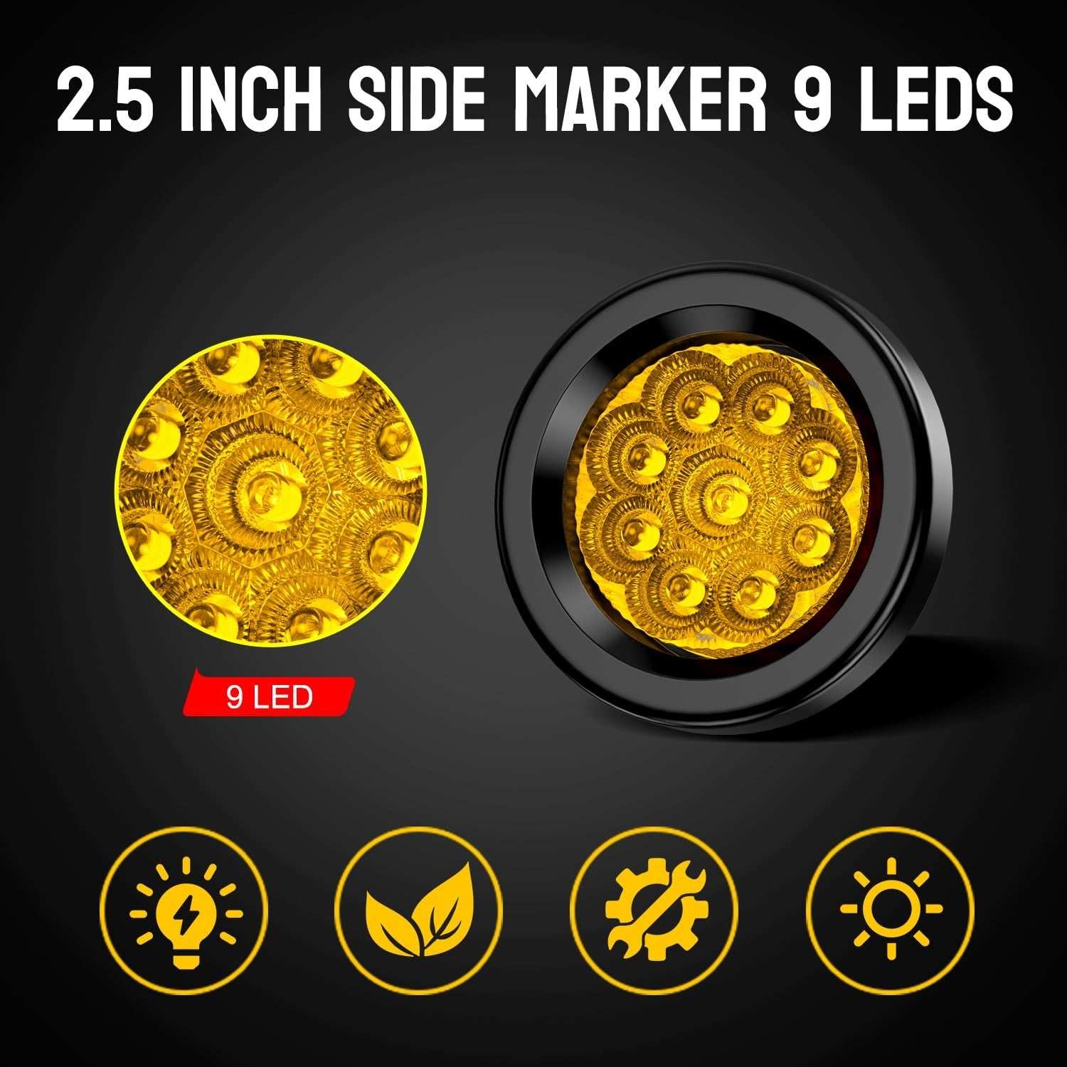 Verandio 10Pcs 2" LED Trailer Marker Lights, 9 LED Round Clearance Red/Amber