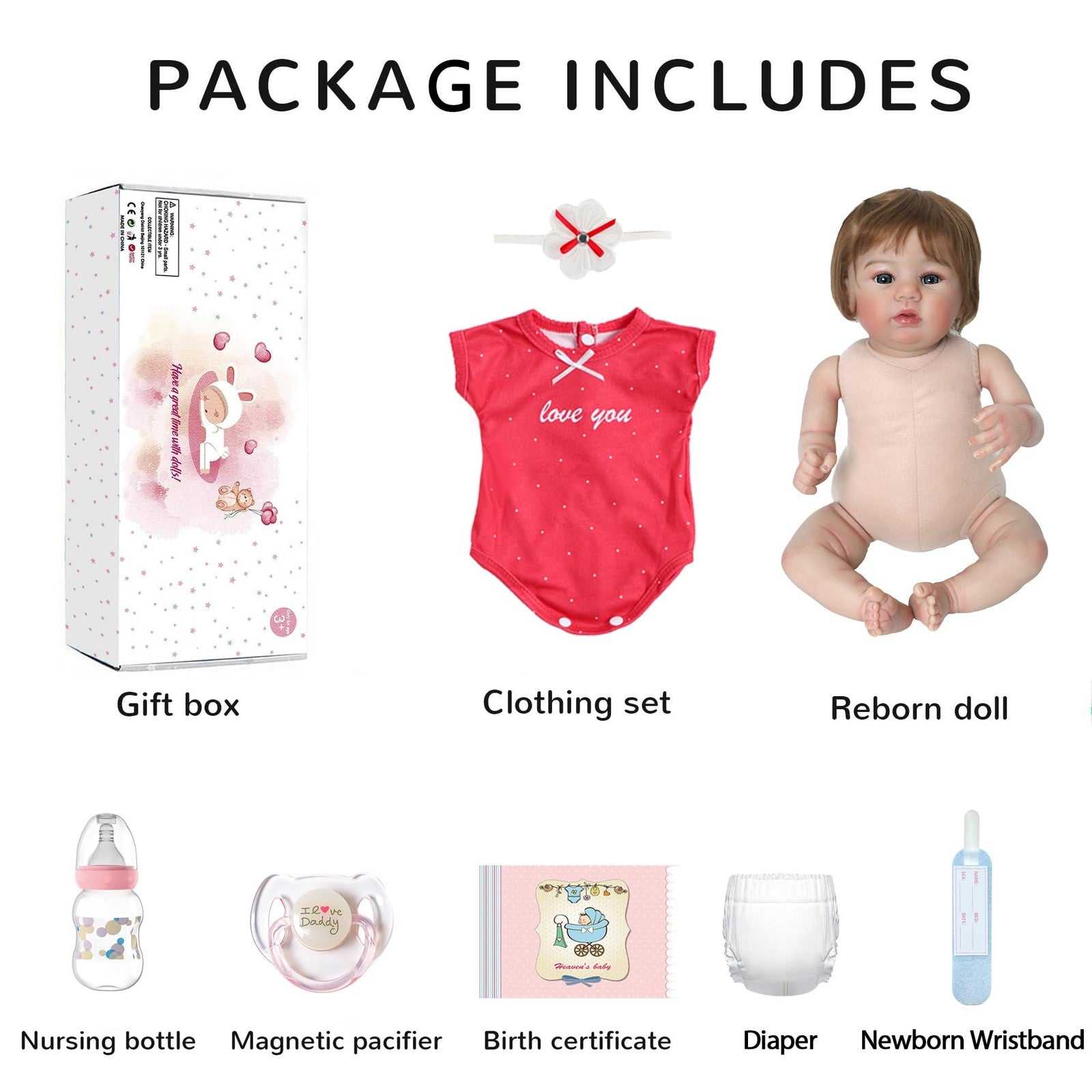 WOOROY 18" Realistic Reborn Baby Doll Lifelike Newborn Girl Toy Non-Toxic Gift