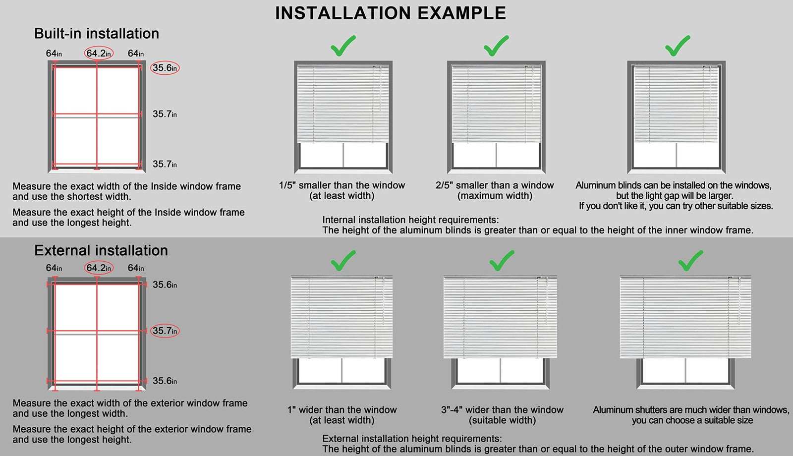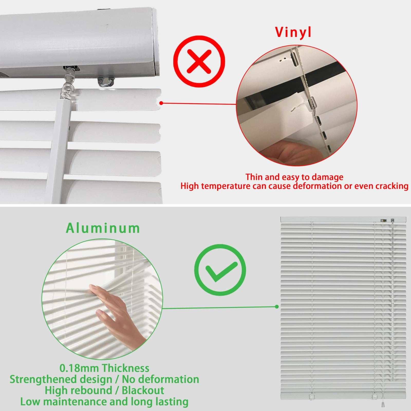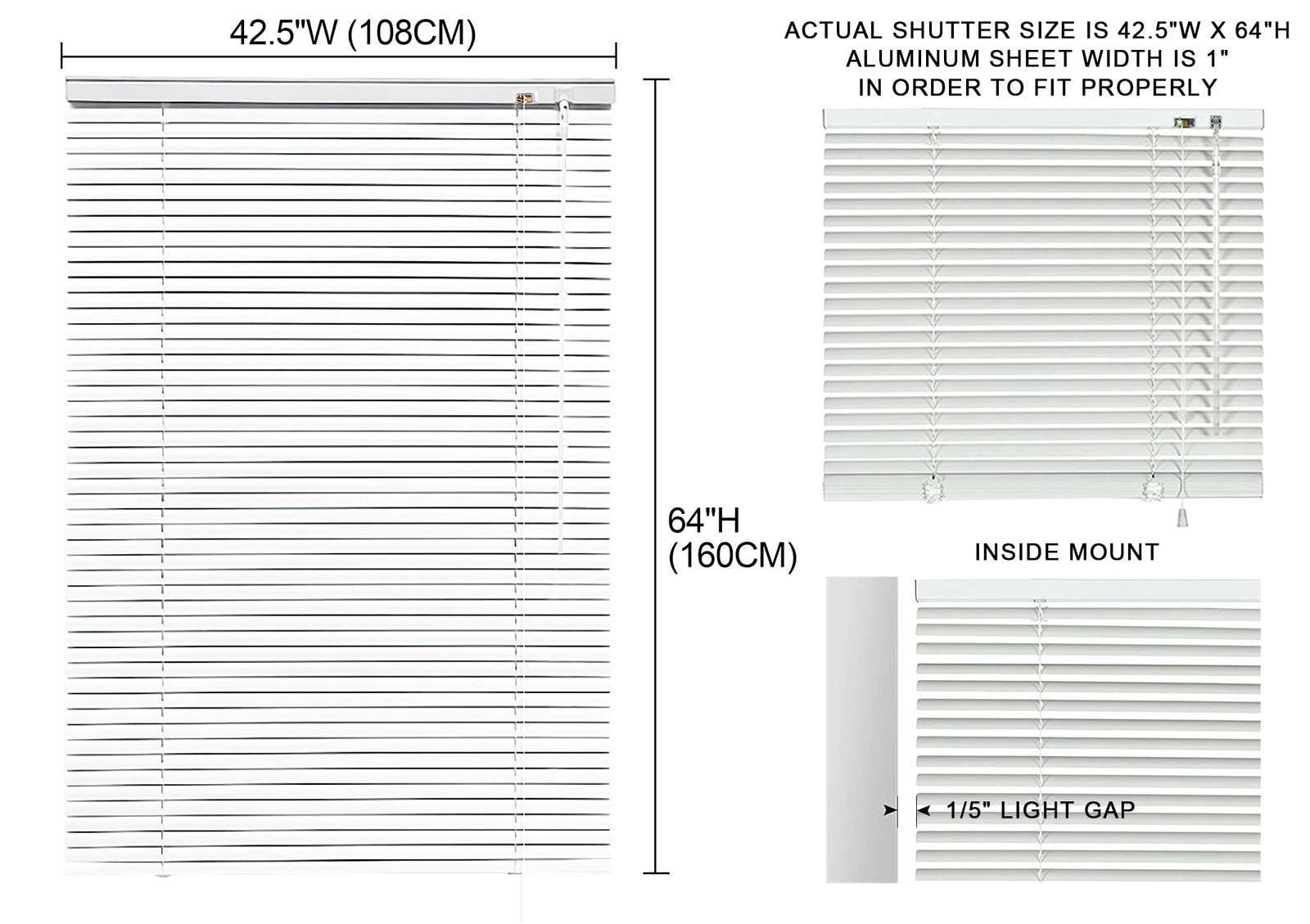 YIIBAII 43"W x 64"H White 1" Aluminum Mini Blinds Horizontal Venetian Blinds
