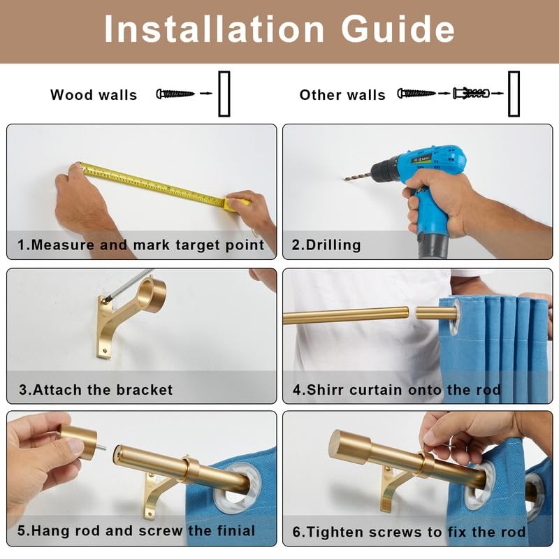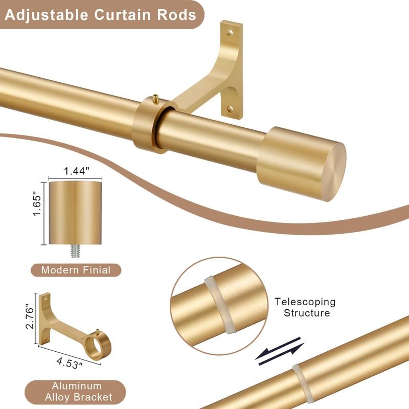 2-Pack 72-144" Warm Gold Telescoping Decorative Heavy Duty Window Curtain Rods