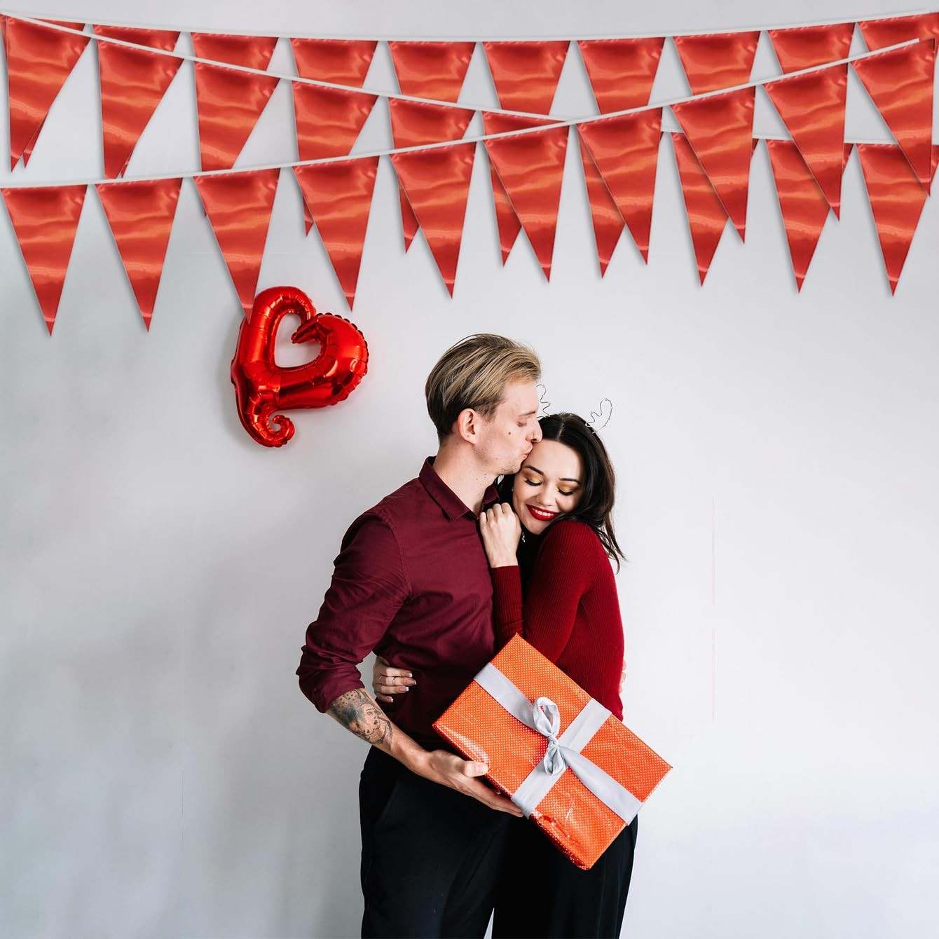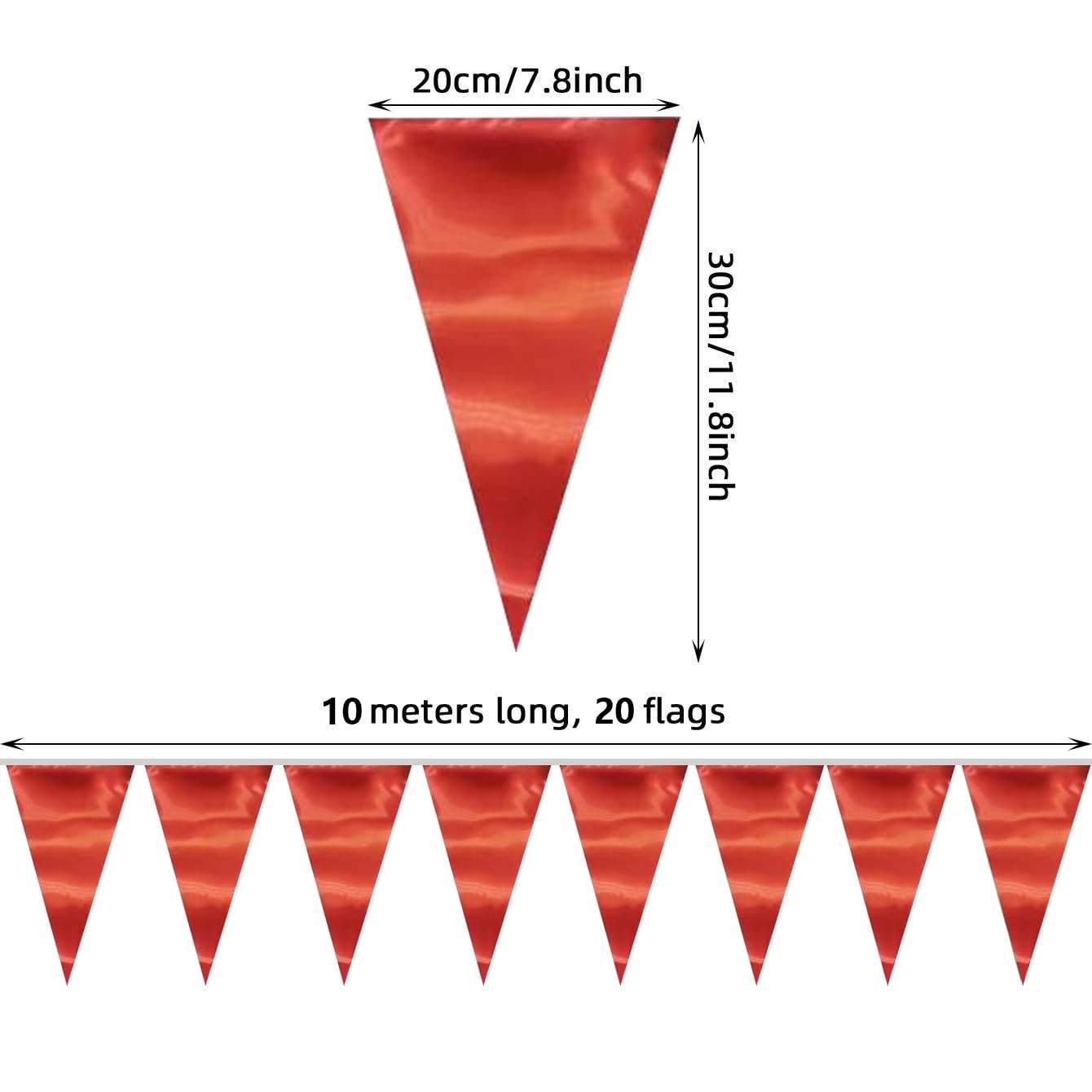 20M/65FT Red Triangle Pennant Banner Flag Metallic Fabric Bunting Garland for Ch