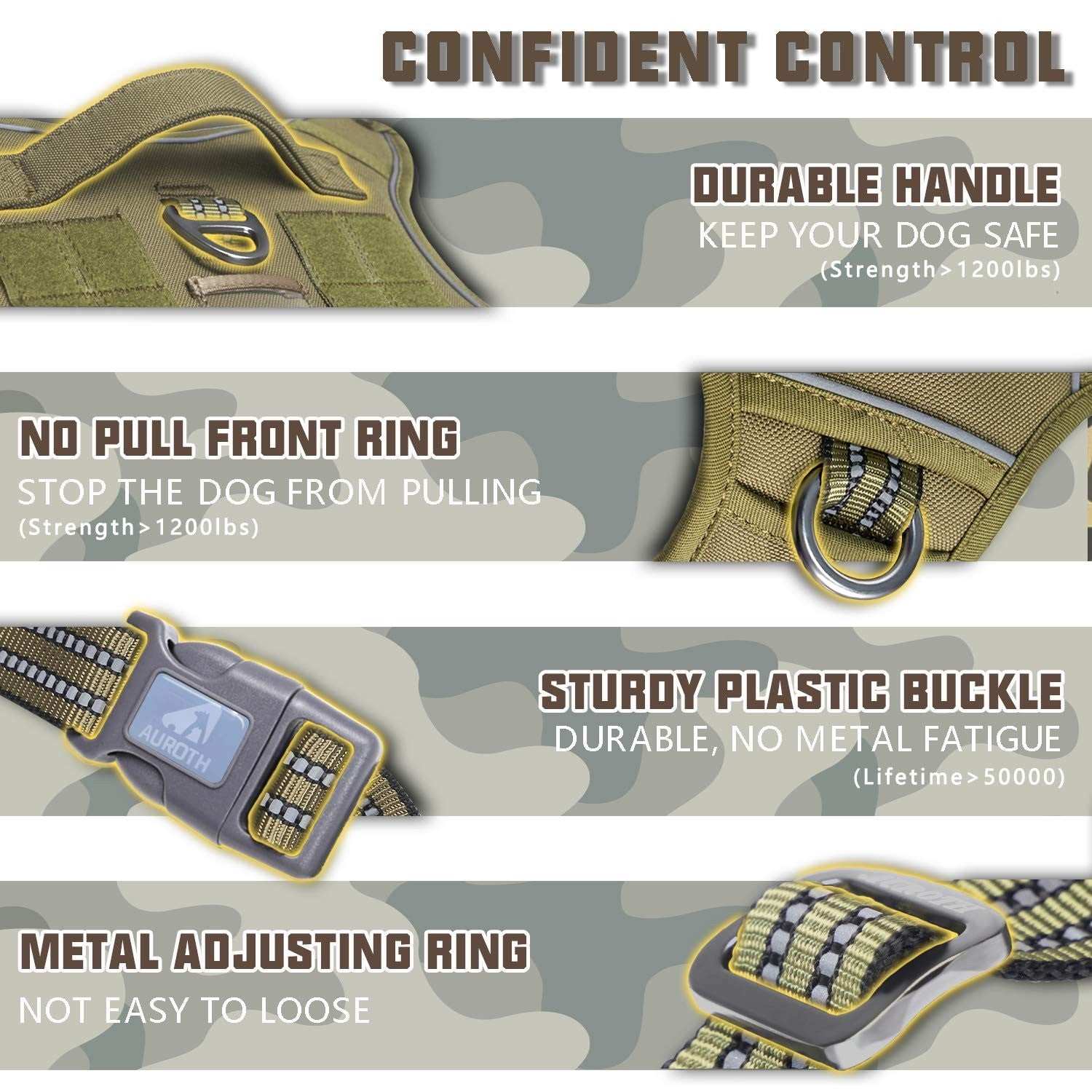 Auroth Tactical Dog Harness Large No Pull Adjustable Pet Vest Reflective w/Handl