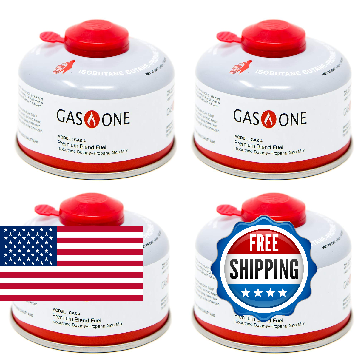 GasOne Isobutane Camping Fuel Blend Canister 100g (4 Pack) for Backpacking