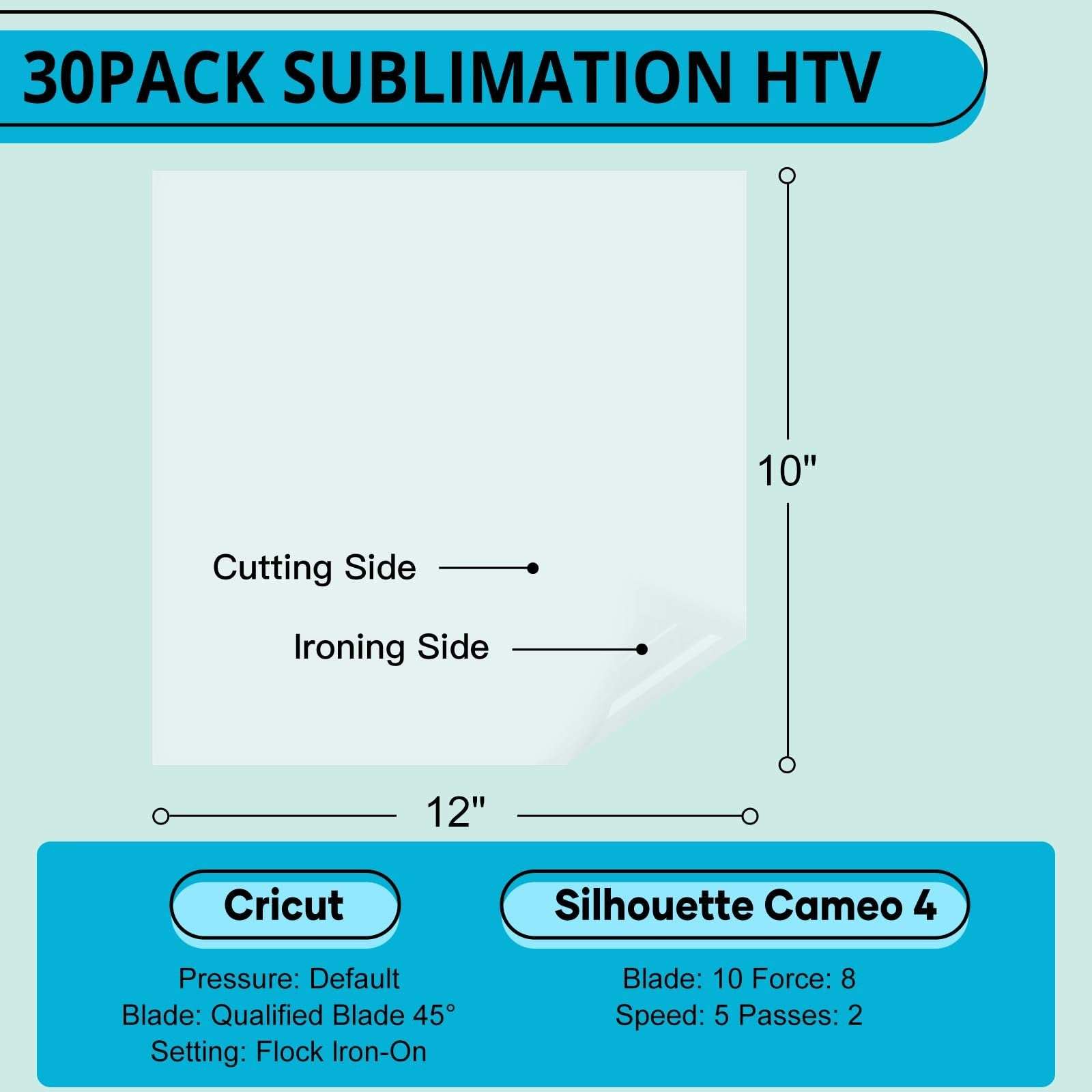 HTVRONT Clear HTV Vinyl for Sublimation 12"x10" 30 PK Matte Cotton Fabric