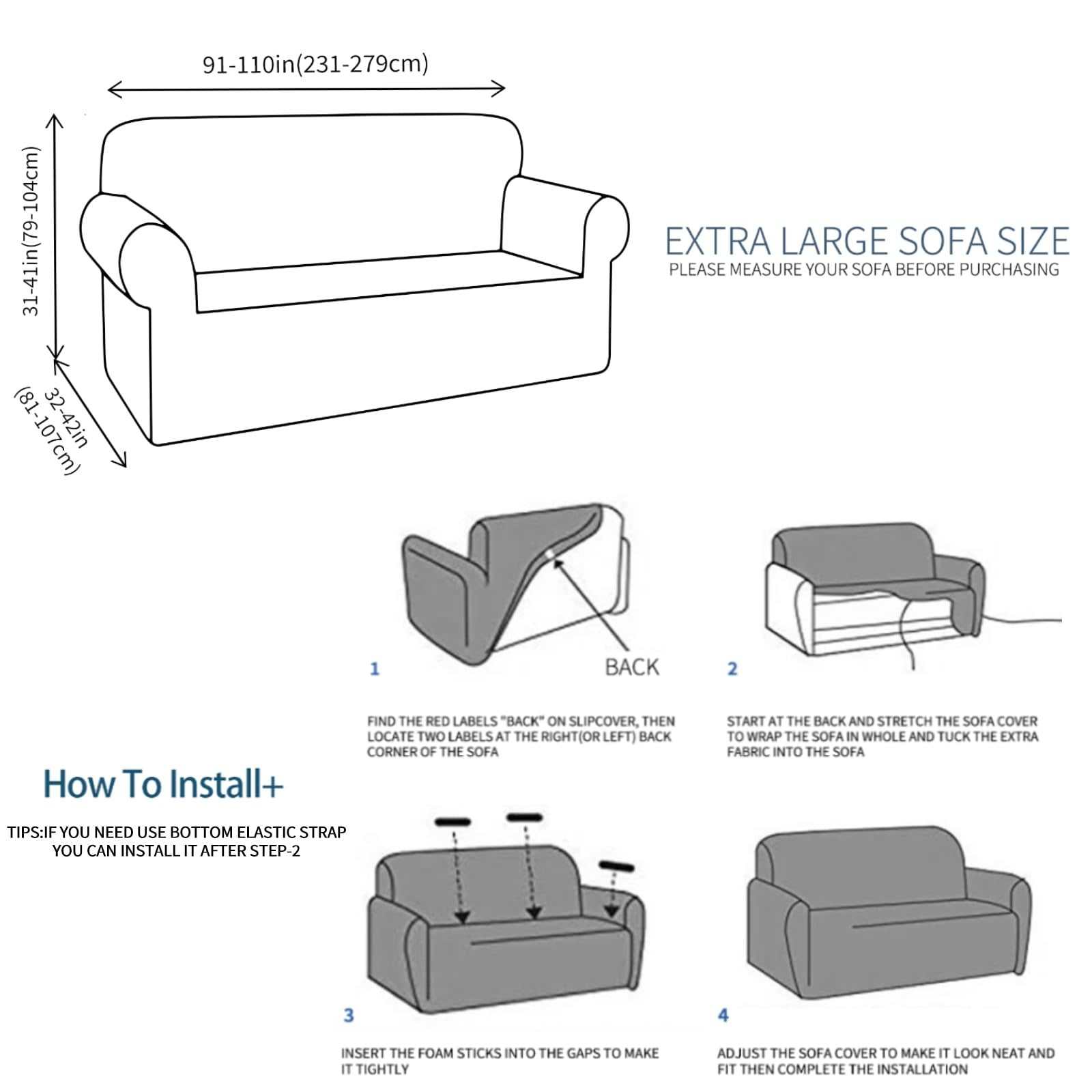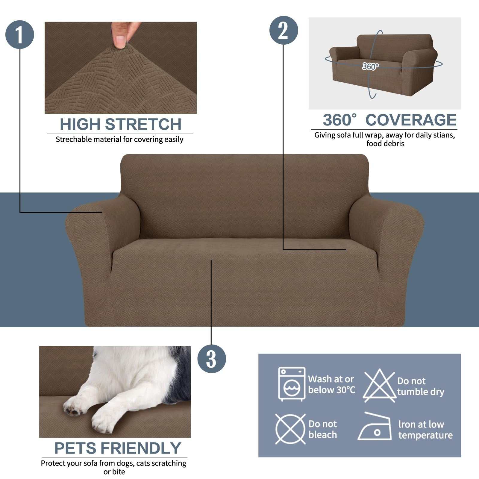 JIVINER 4 Seater Stretch Oversize Jacquard Sofa Couch Cover 1-Piece Universal