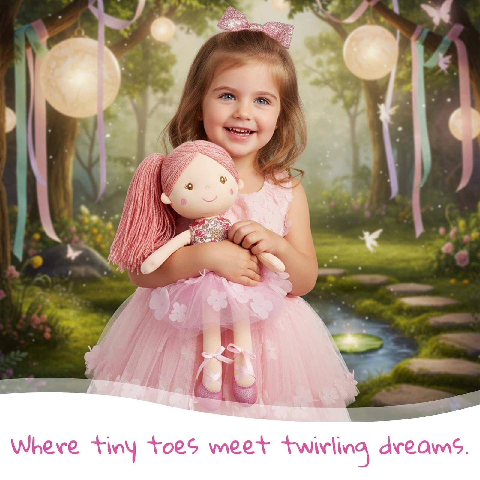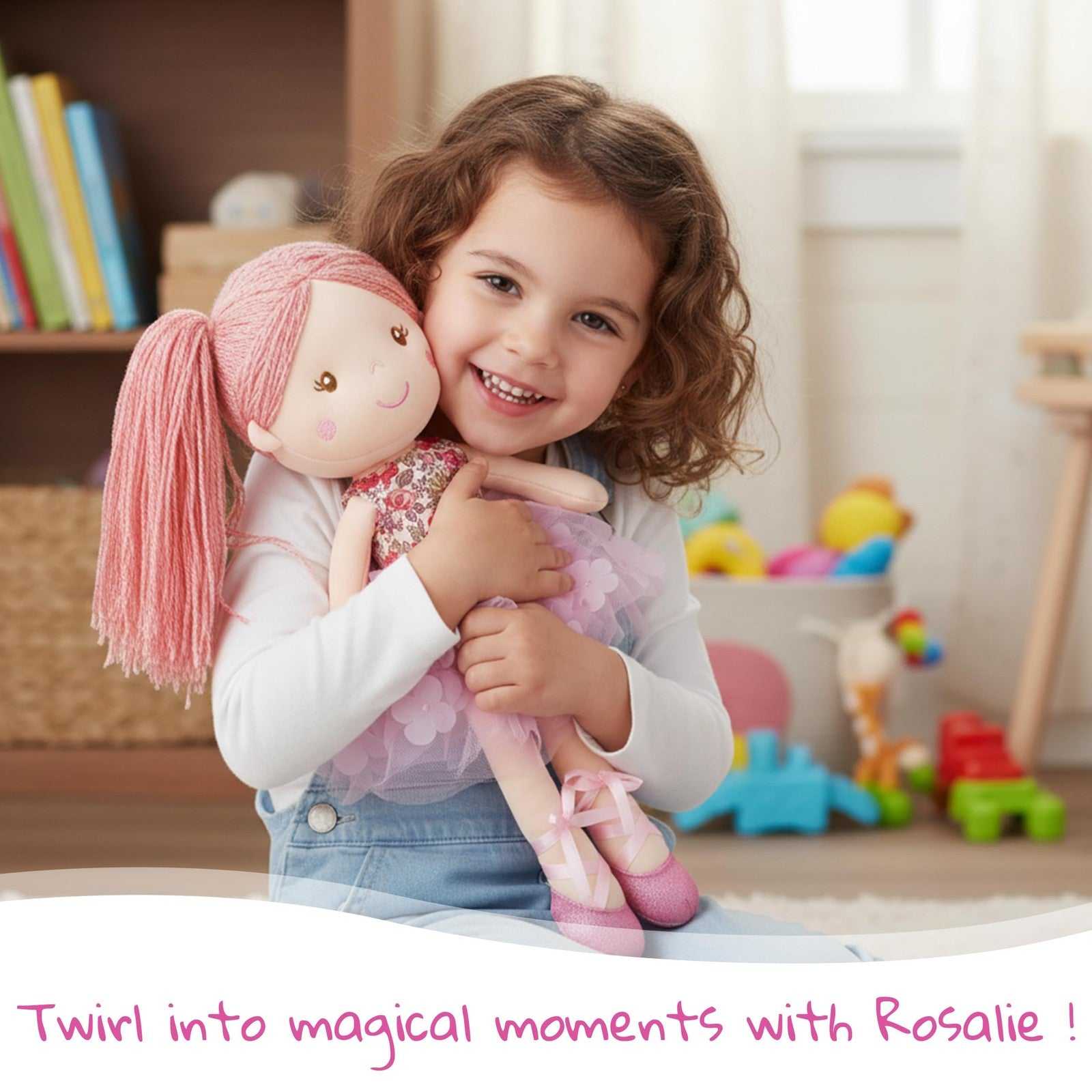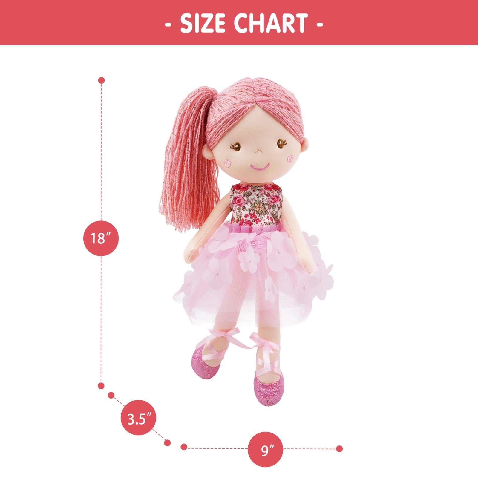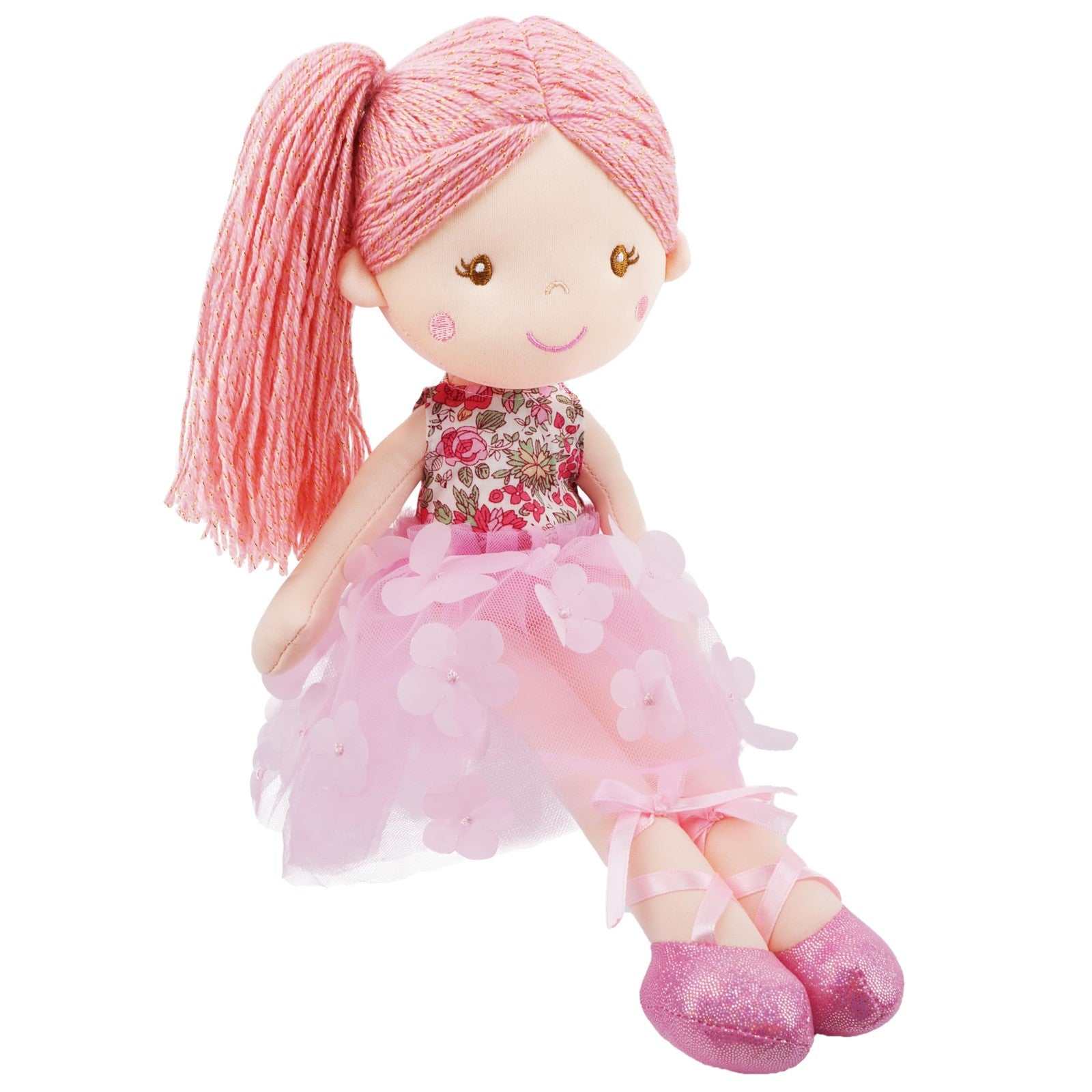 June Garden 18" Ballerina Plush Doll Rosalie - Soft Pink Hair, Floral Dress