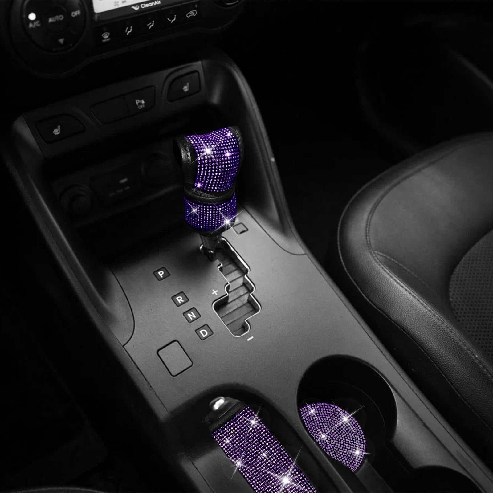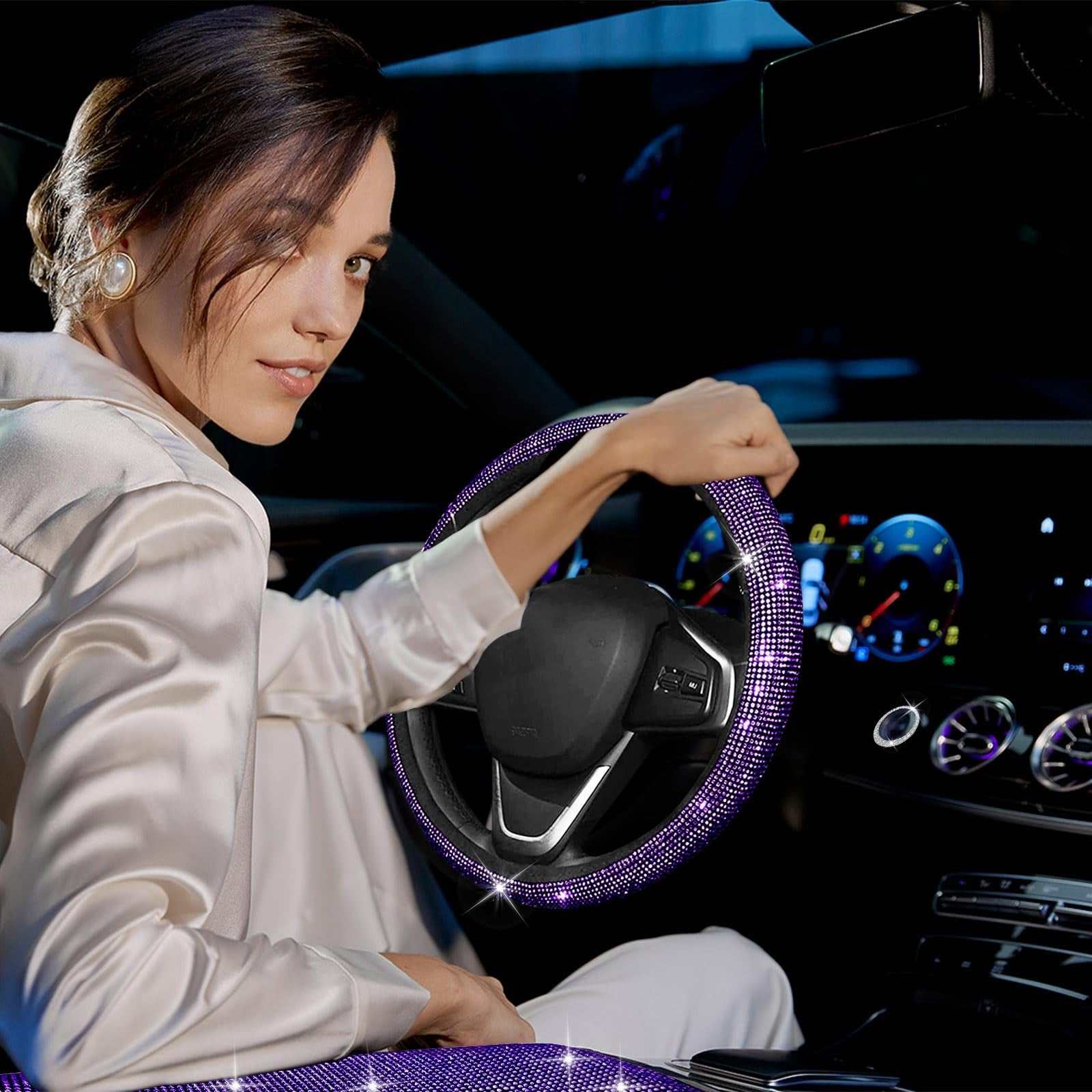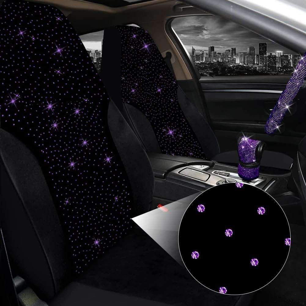 JUSEN 17PC Bling Car Seat Covers Set Diamond Rhinestone Crystal Auto Accessories