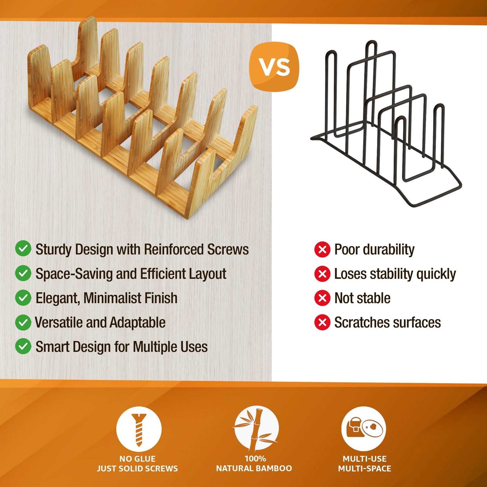 KANDOHAUS Bamboo Pot & Pan Organizer for Kitchen Cabinet - Sturdy & Adjustable
