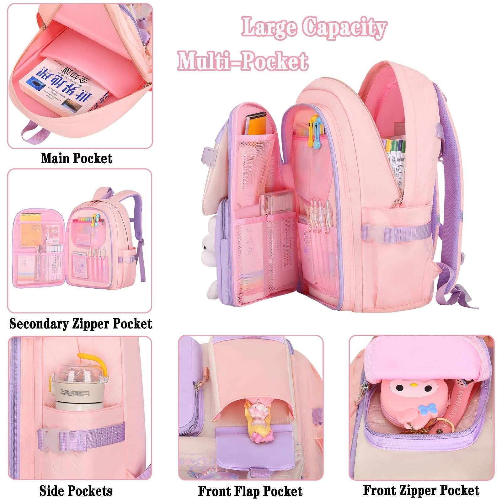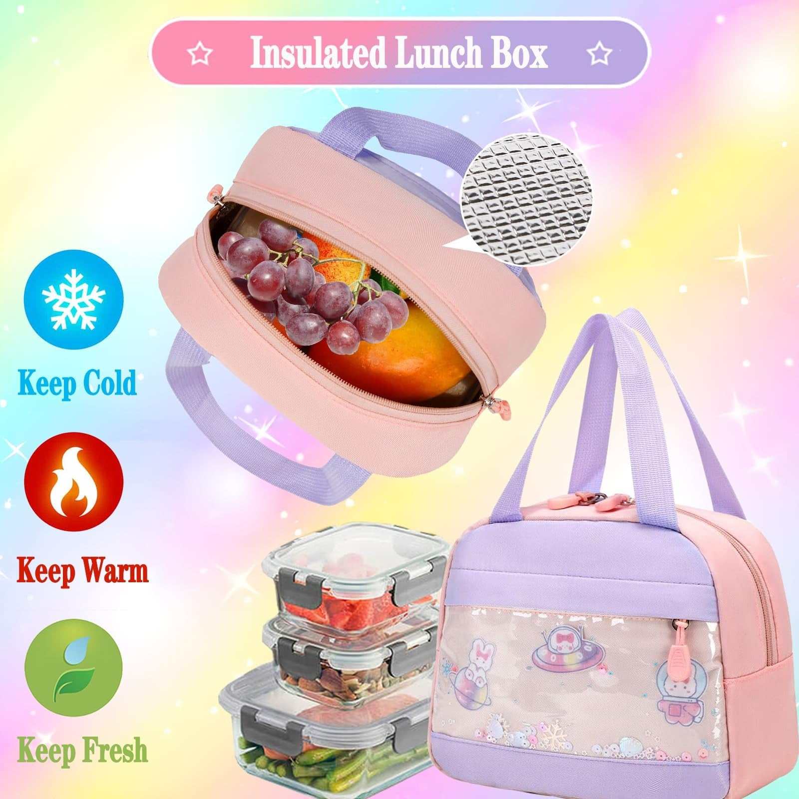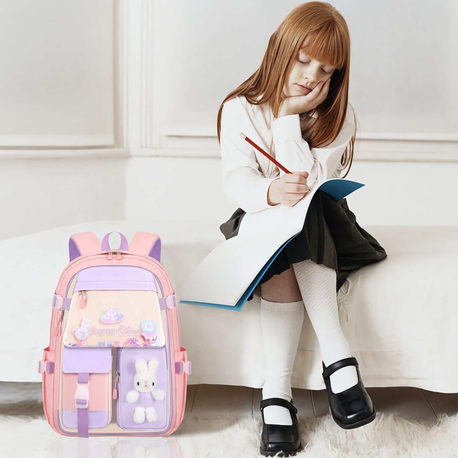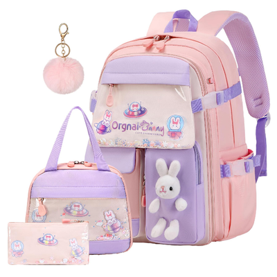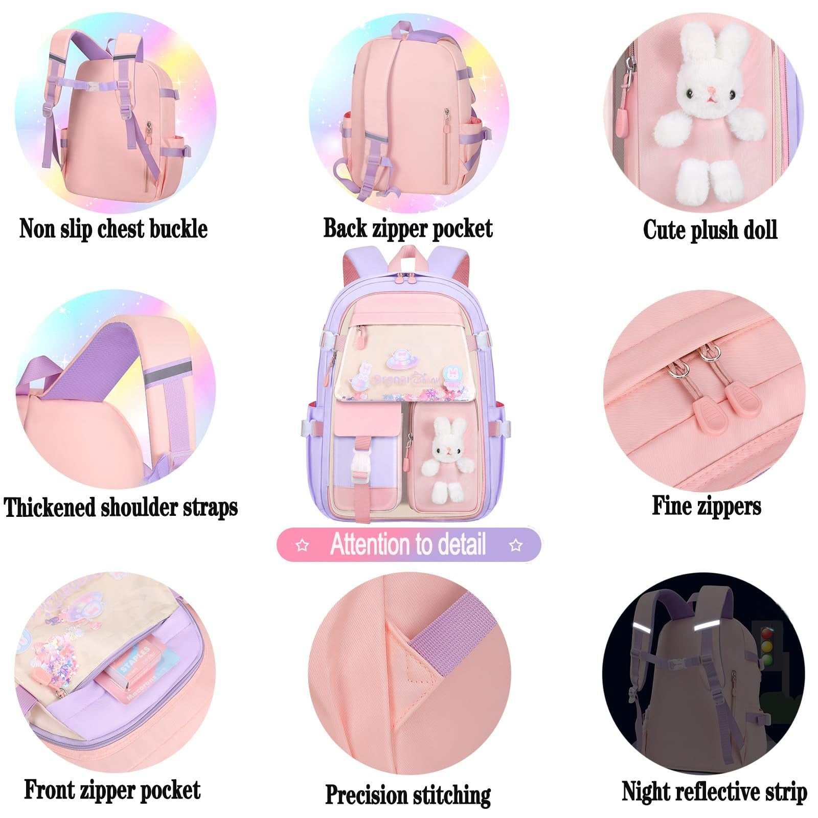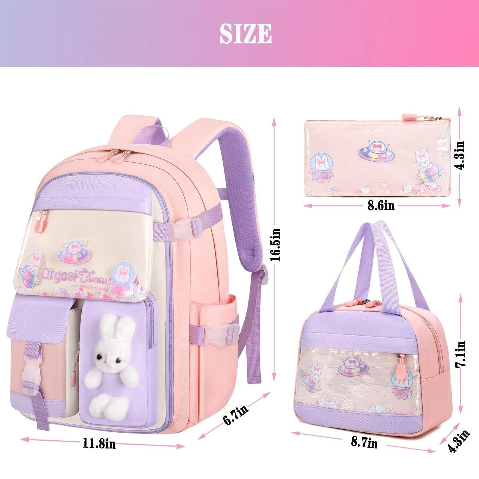 KBGPW 3pcs Girls Backpack With Lunch Box & Pencil Case,Cute Rabbit Kids School B