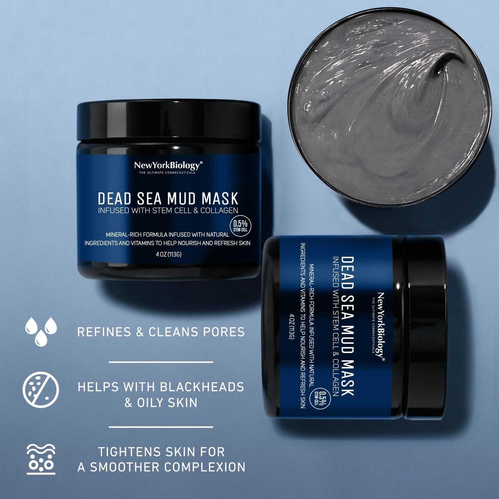 New York Biology Dead Sea Mud Mask - Face & Body, Stem Cell, Collagen