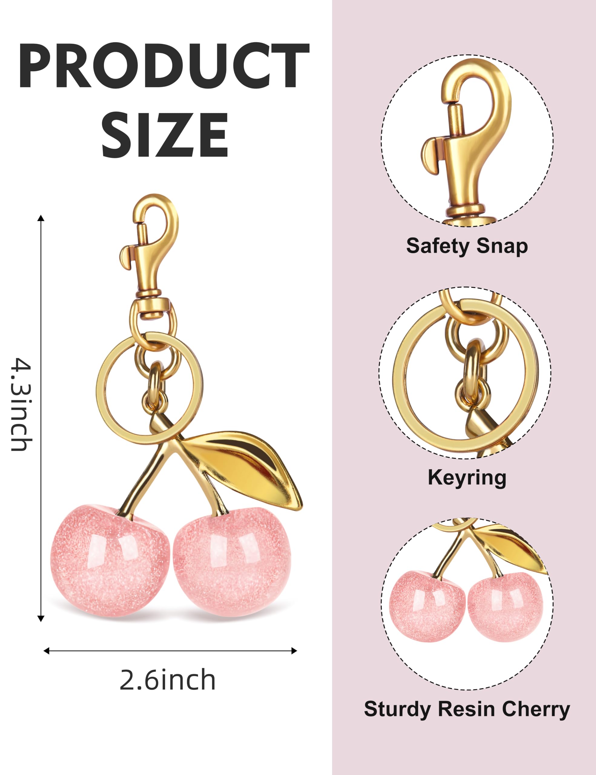 OVRUNS Cute Cherry Bag Charm Keychain - Sparkling Resin Purse Charm Accessory