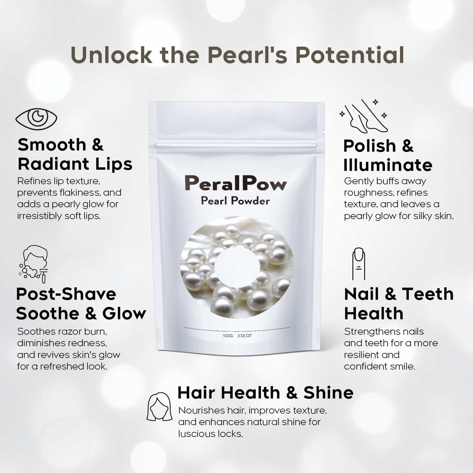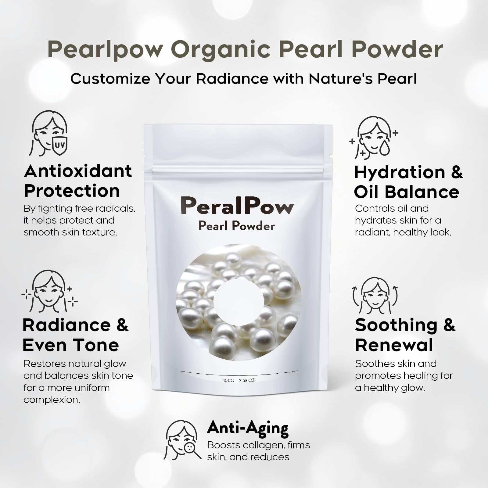Peralpow Organic Pearl Powder 100g 3.52oz DIY Skin Care Anti-Aging Pore
