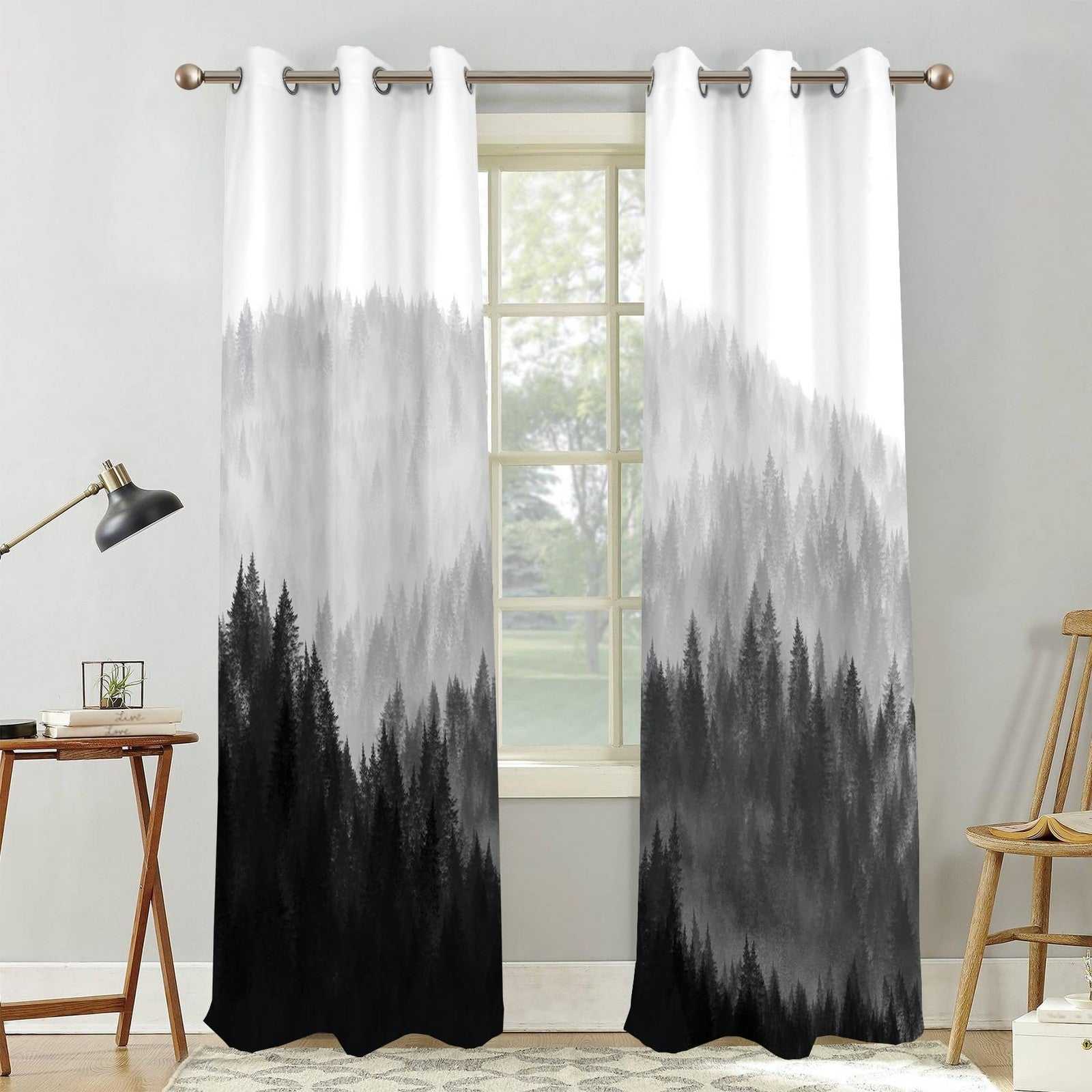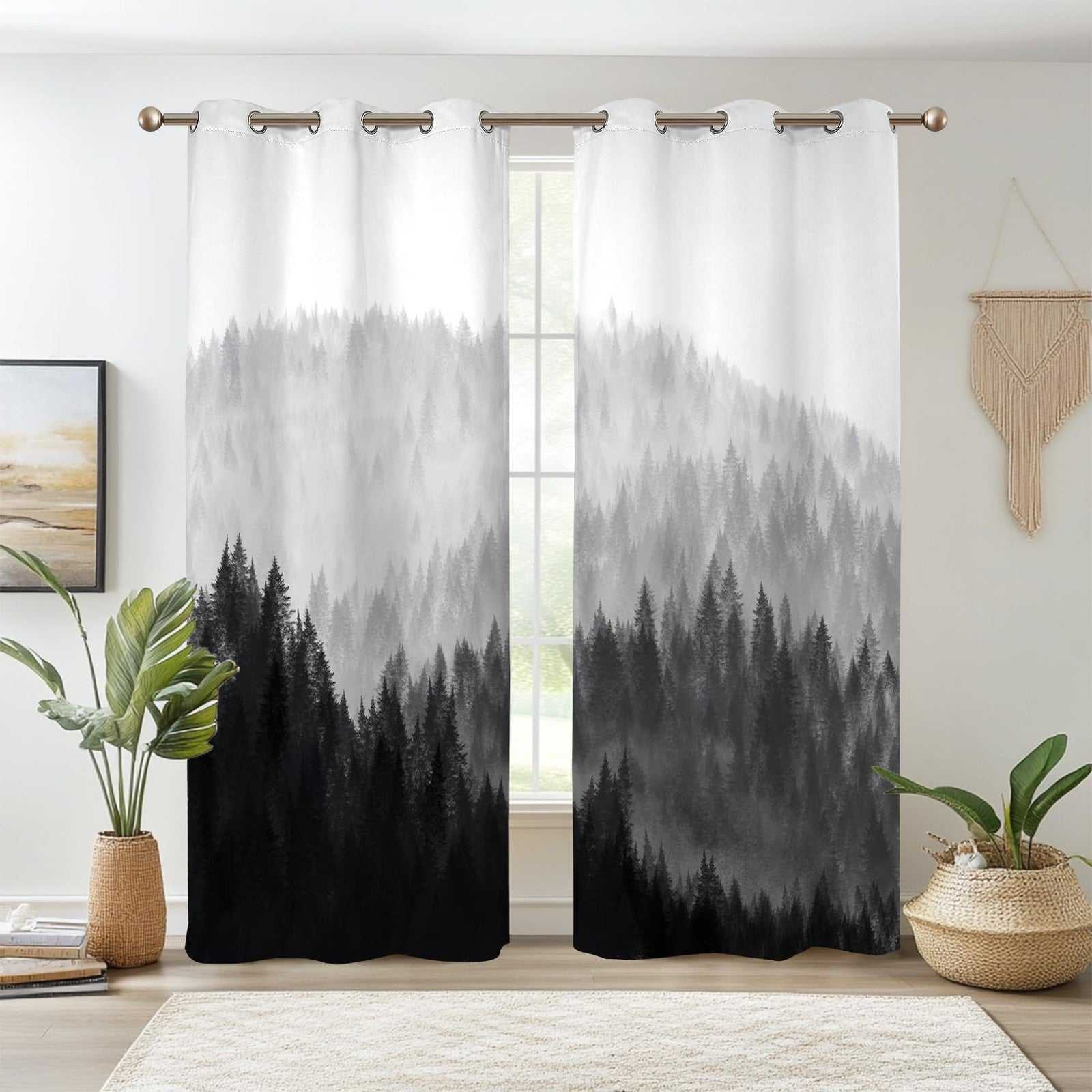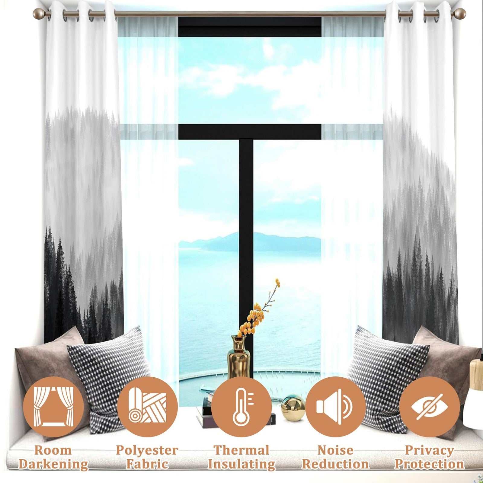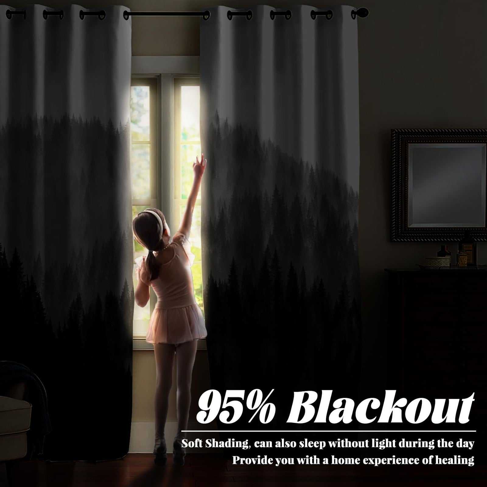 Renaiss Gray Black Forest Blackout Curtains Gradient Misty Mountain Room Darkeni