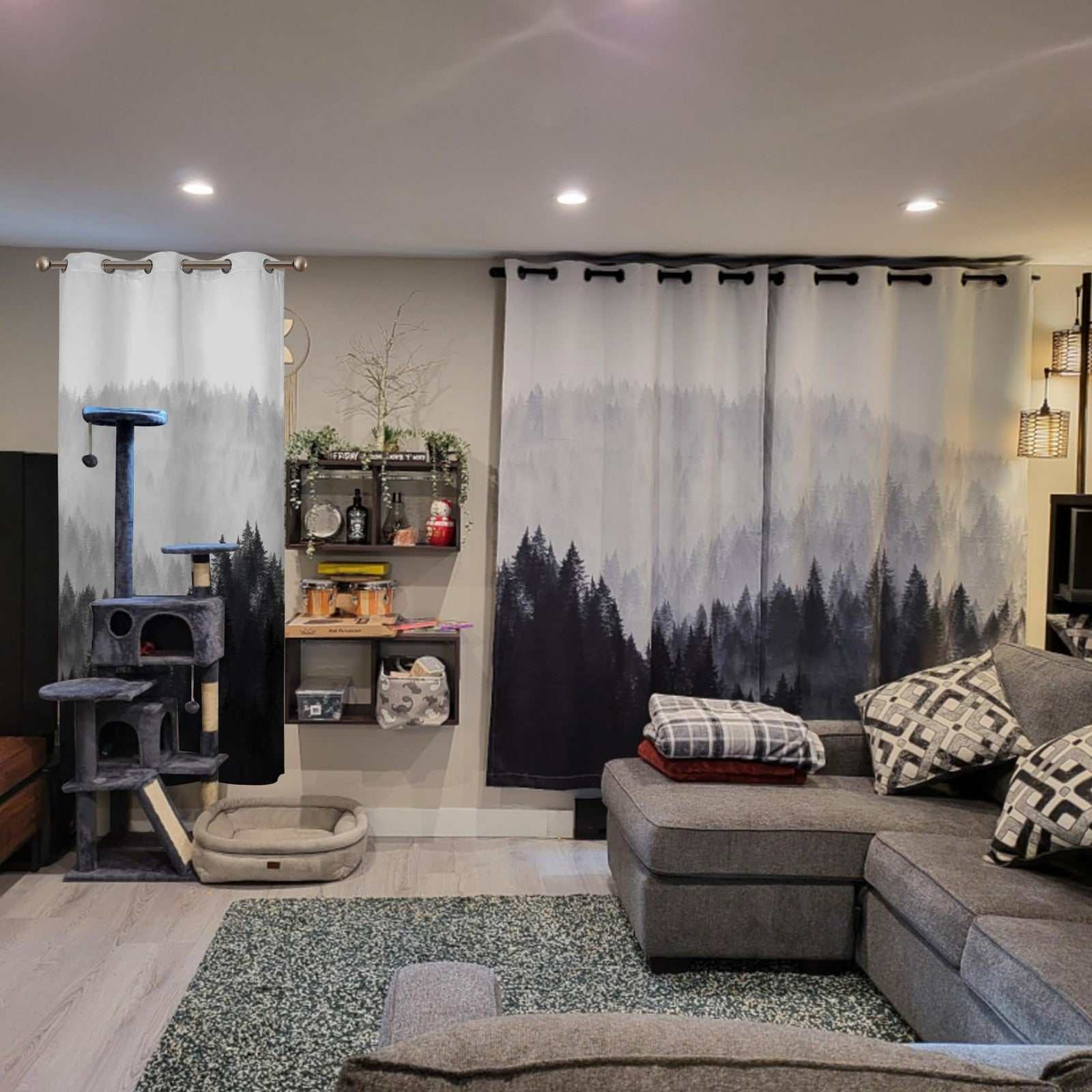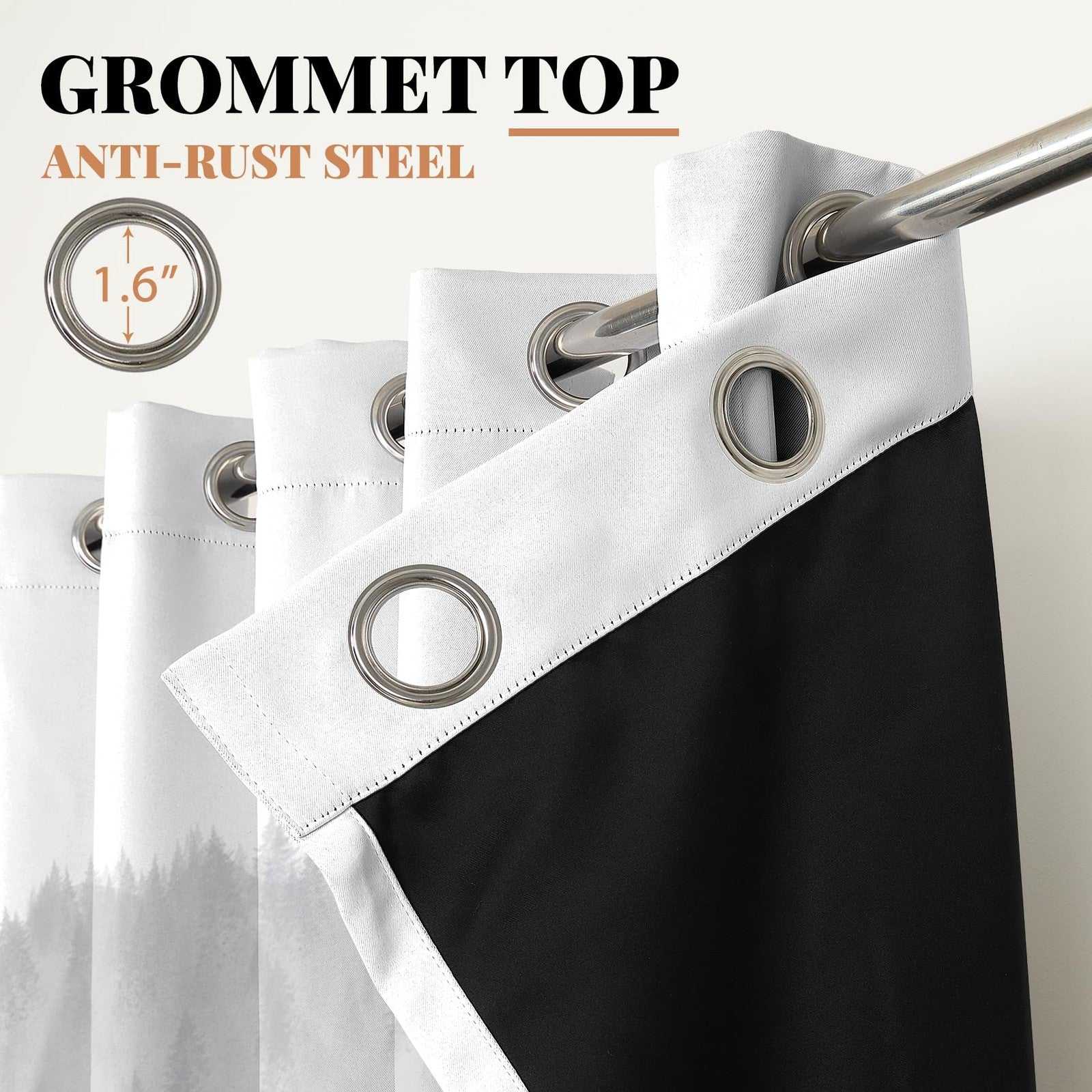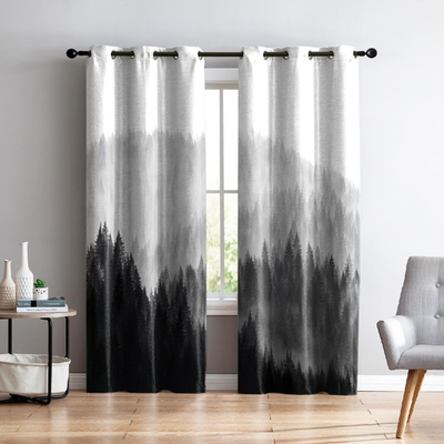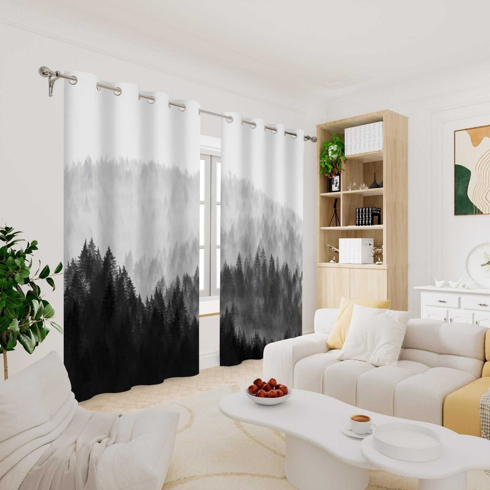 Renaiss Gray Black Forest Blackout Curtains Gradient Misty Mountain Room Darkeni