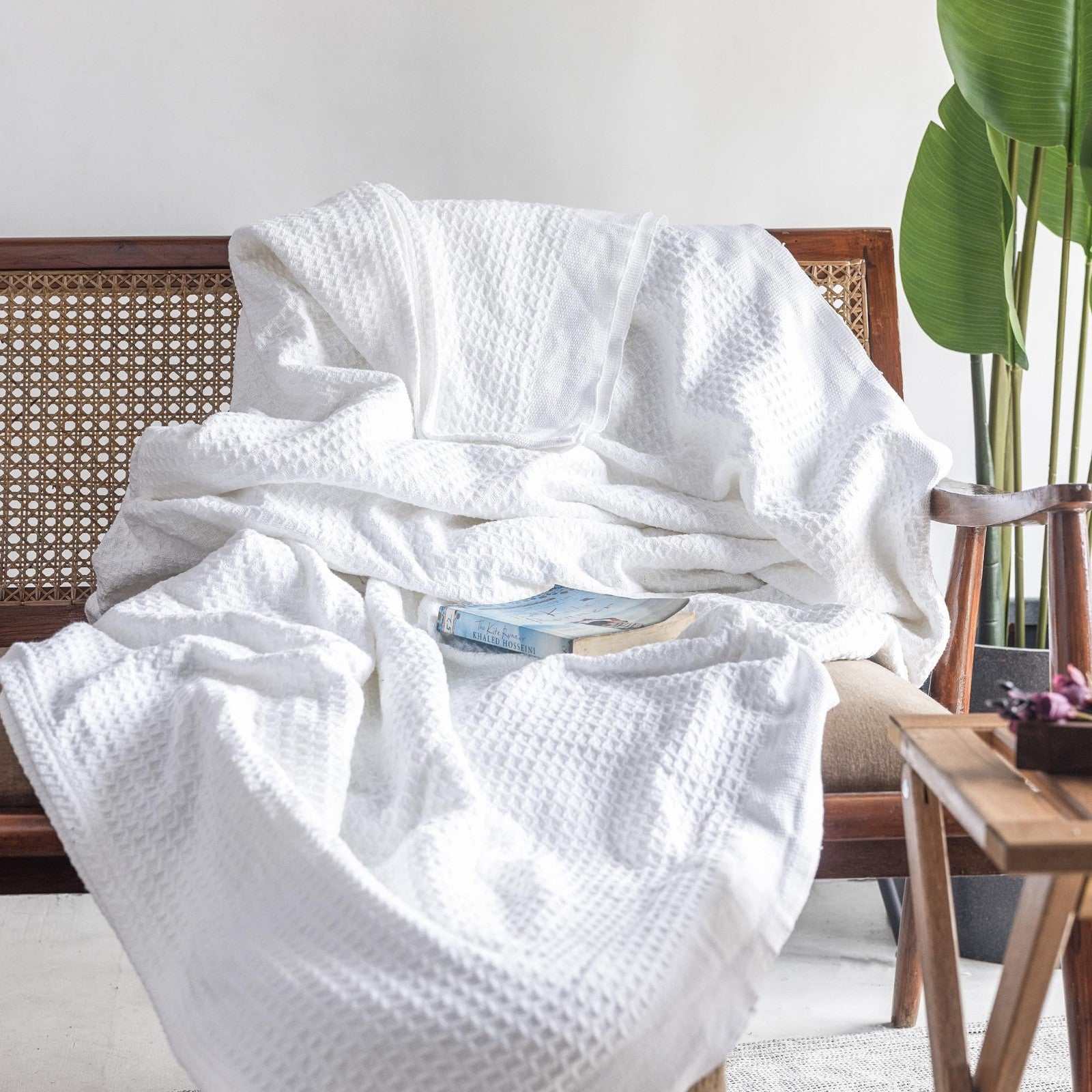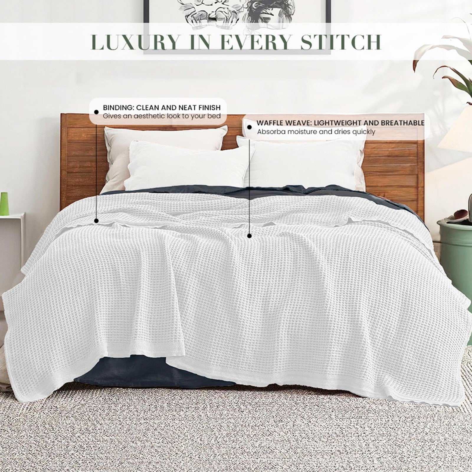 Salt Earth 100% Cotton Waffle Blanket Queen 90x92 Lightweight All Season Throw