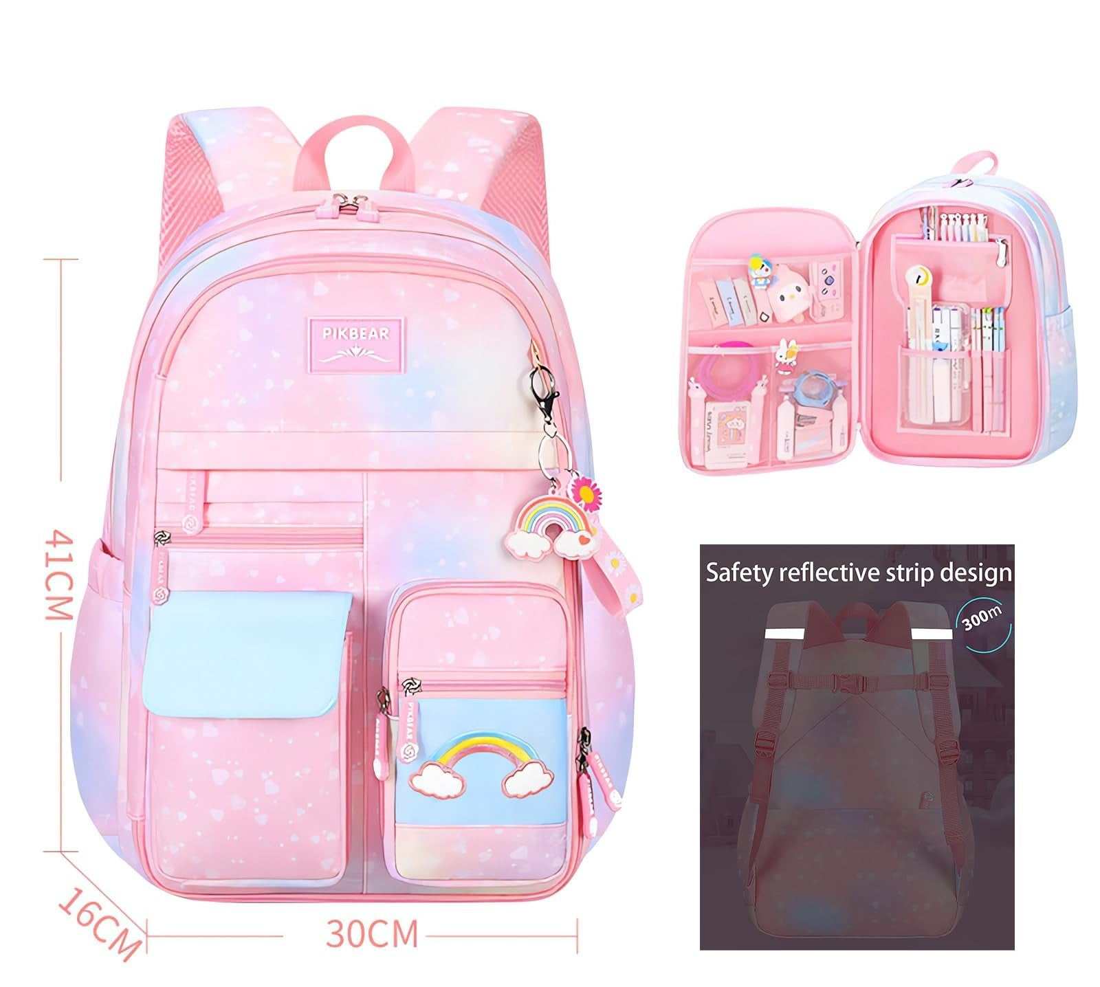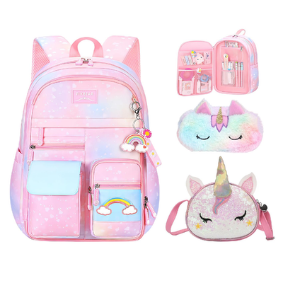 Uamdrup 3Pcs Girl Backpack Set Kids Rainbow School Bag School Bookbag Shoulder B