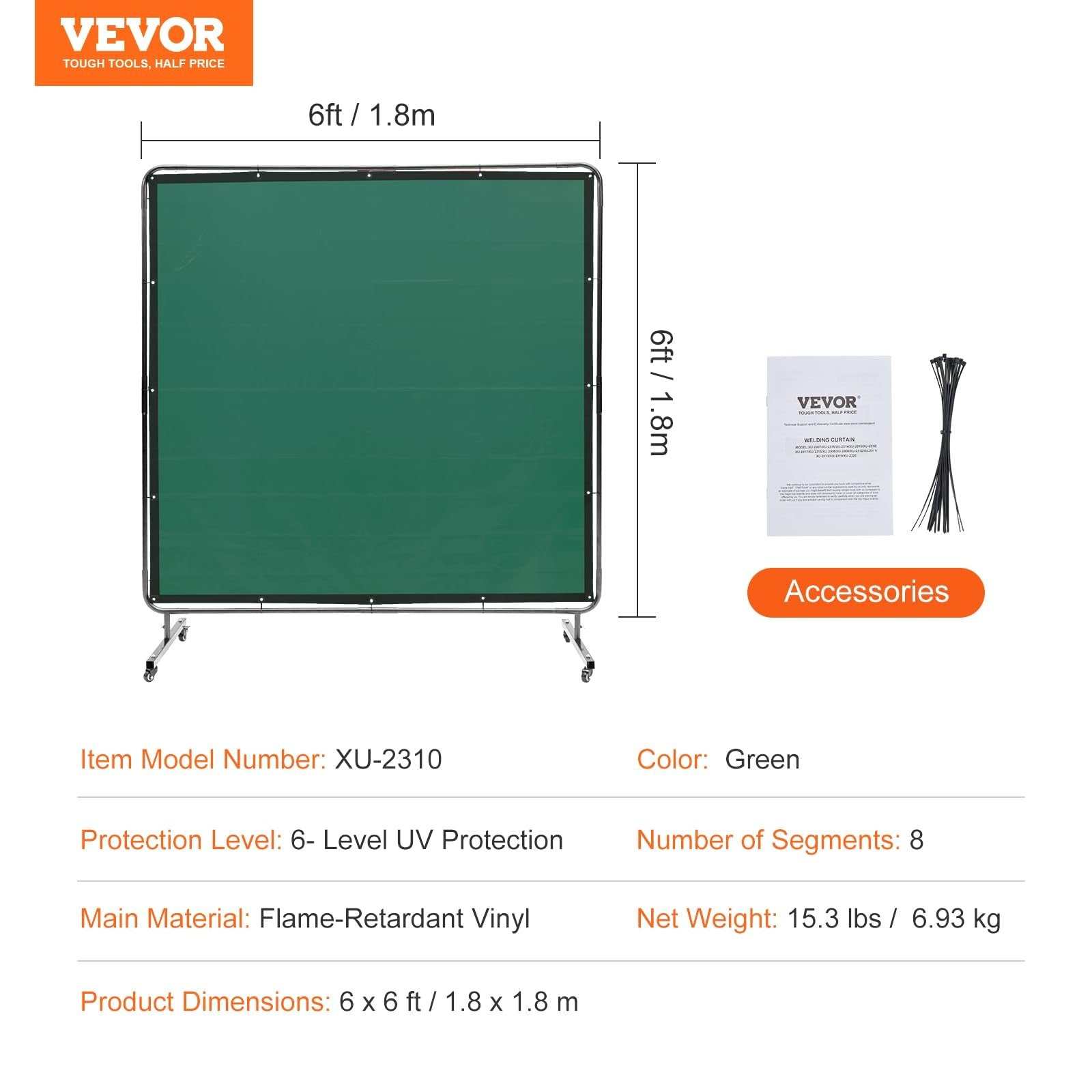 VEVOR 6x6ft Welding Screen w/ Frame, Flame-Resistant Curtain, 8-Segment, Green