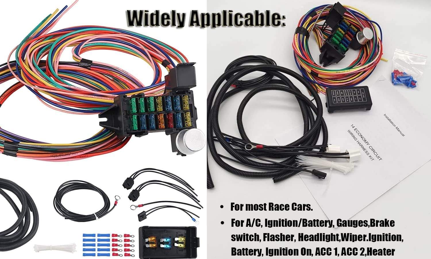 WZruibo Wiring Harness 14 Circuit Universal,Circuit Wiring Harness Kit 14 Fuse f