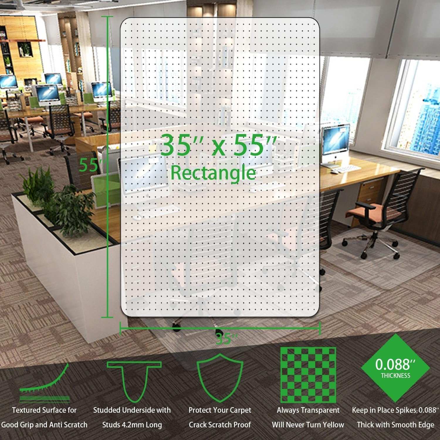 100pointONE 35x55" Studded Office Chair Mat for Low Pile Carpet Desk Floor