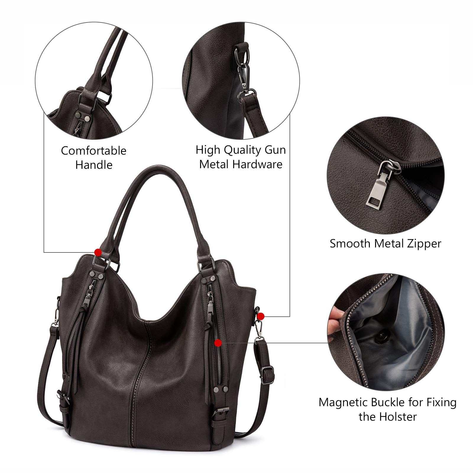 Concealed Carry Hobo Purse for Women, Faux Leather Crossbody Shoulder Bag