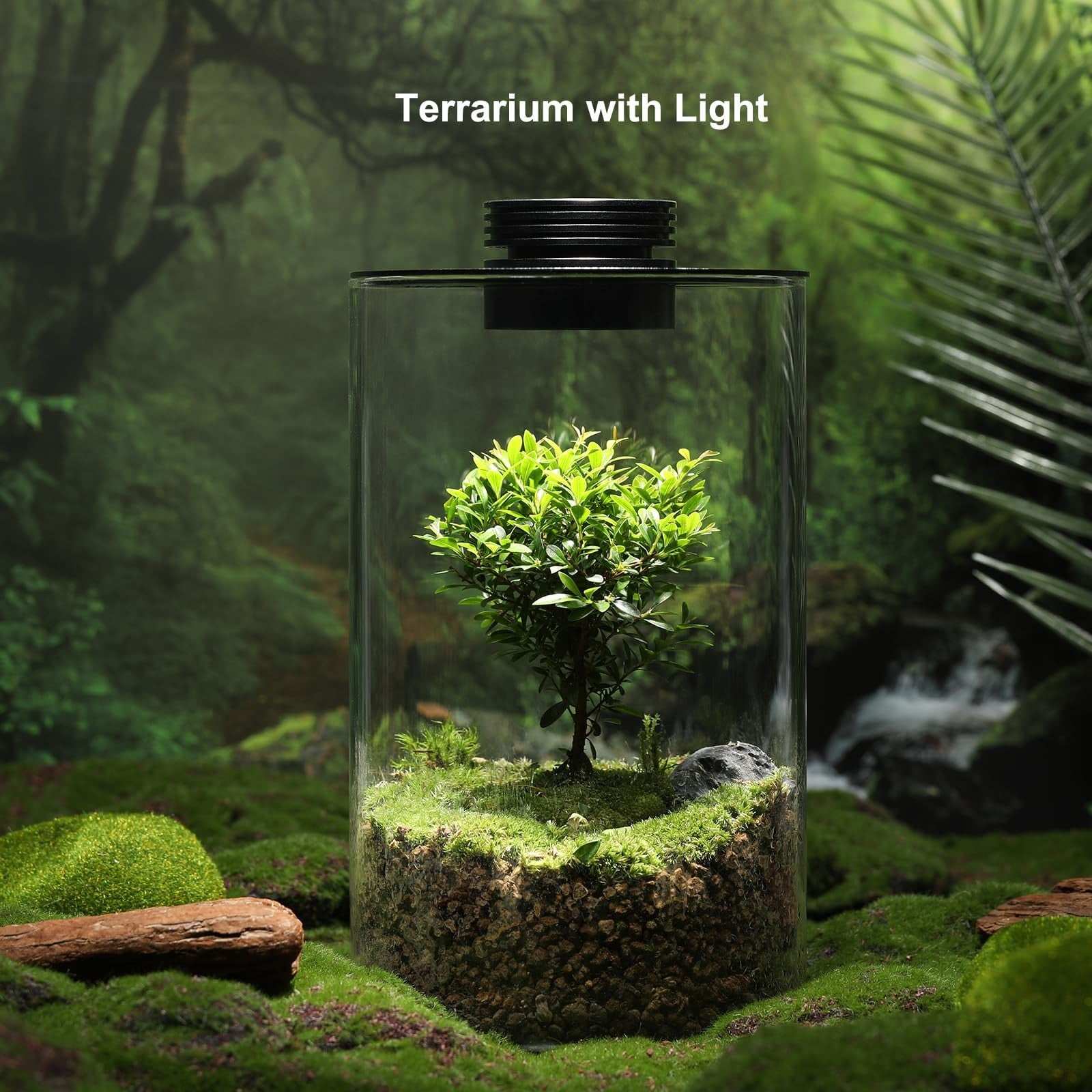 Desktop Glass Plant Terrarium with Grow Light (H:9.8" D:5.9"), for Succulent, Mo