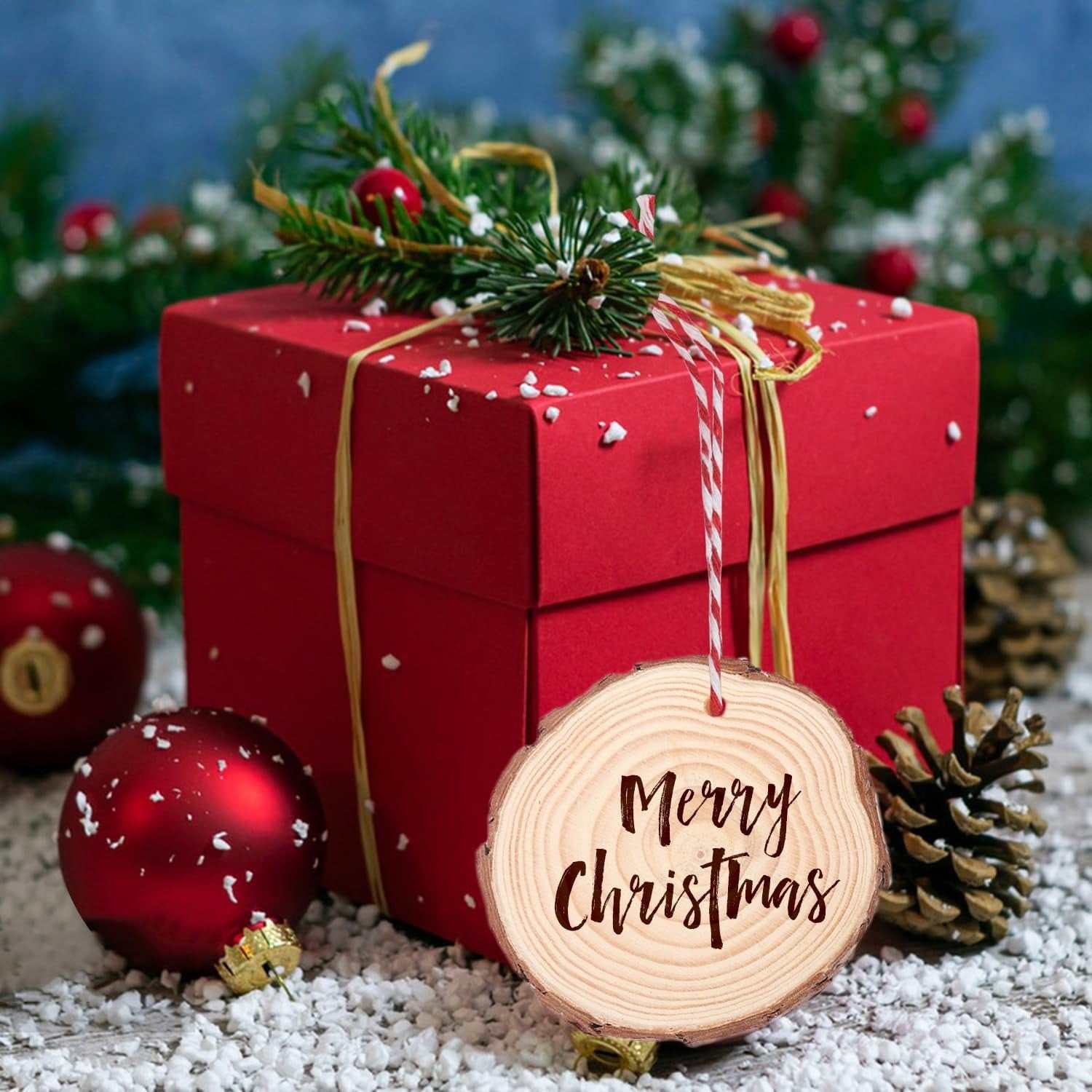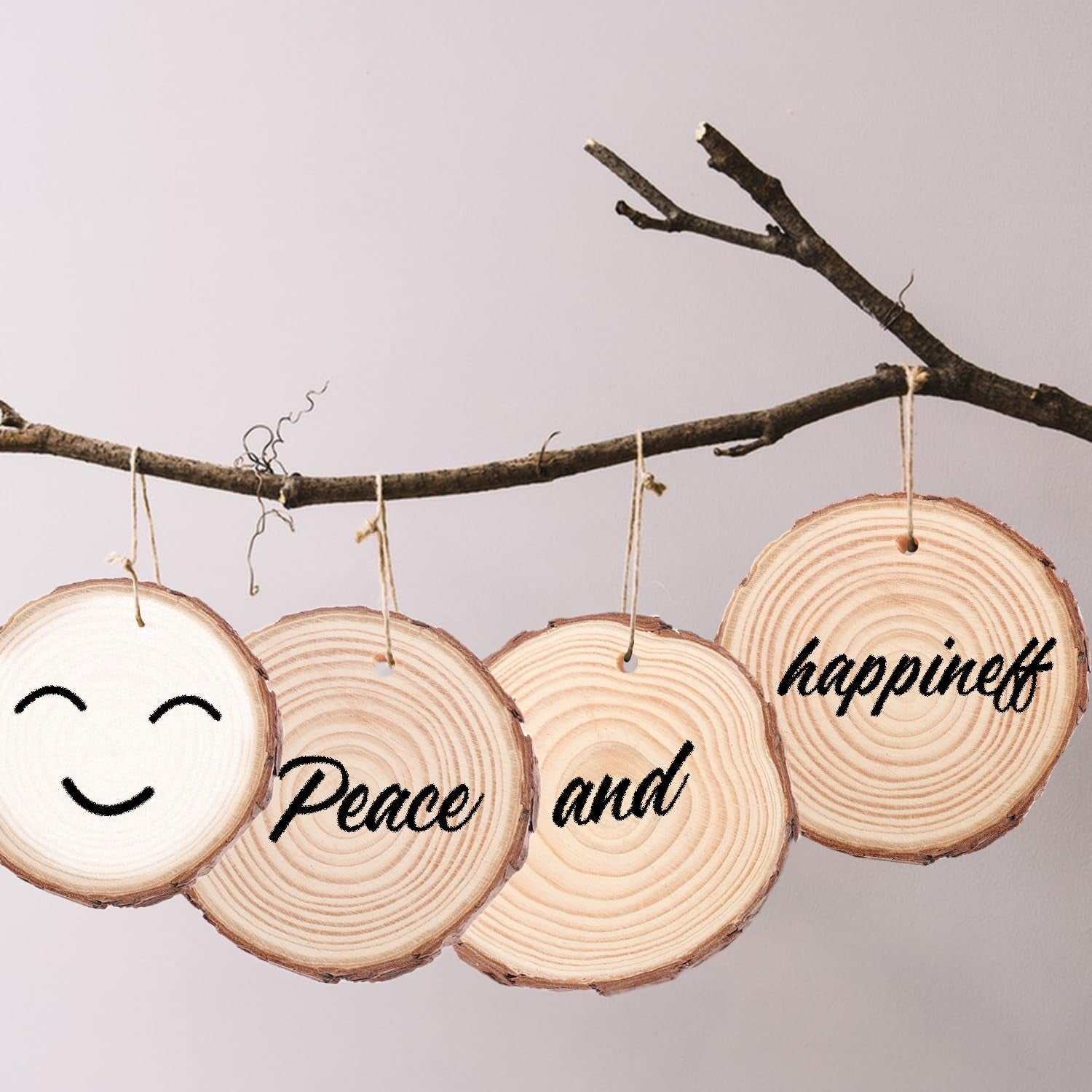 GNIEMCKIN 60x 4" Unfinished Wood Slices, Pre-drilled Craft Ornaments, Natural Pi