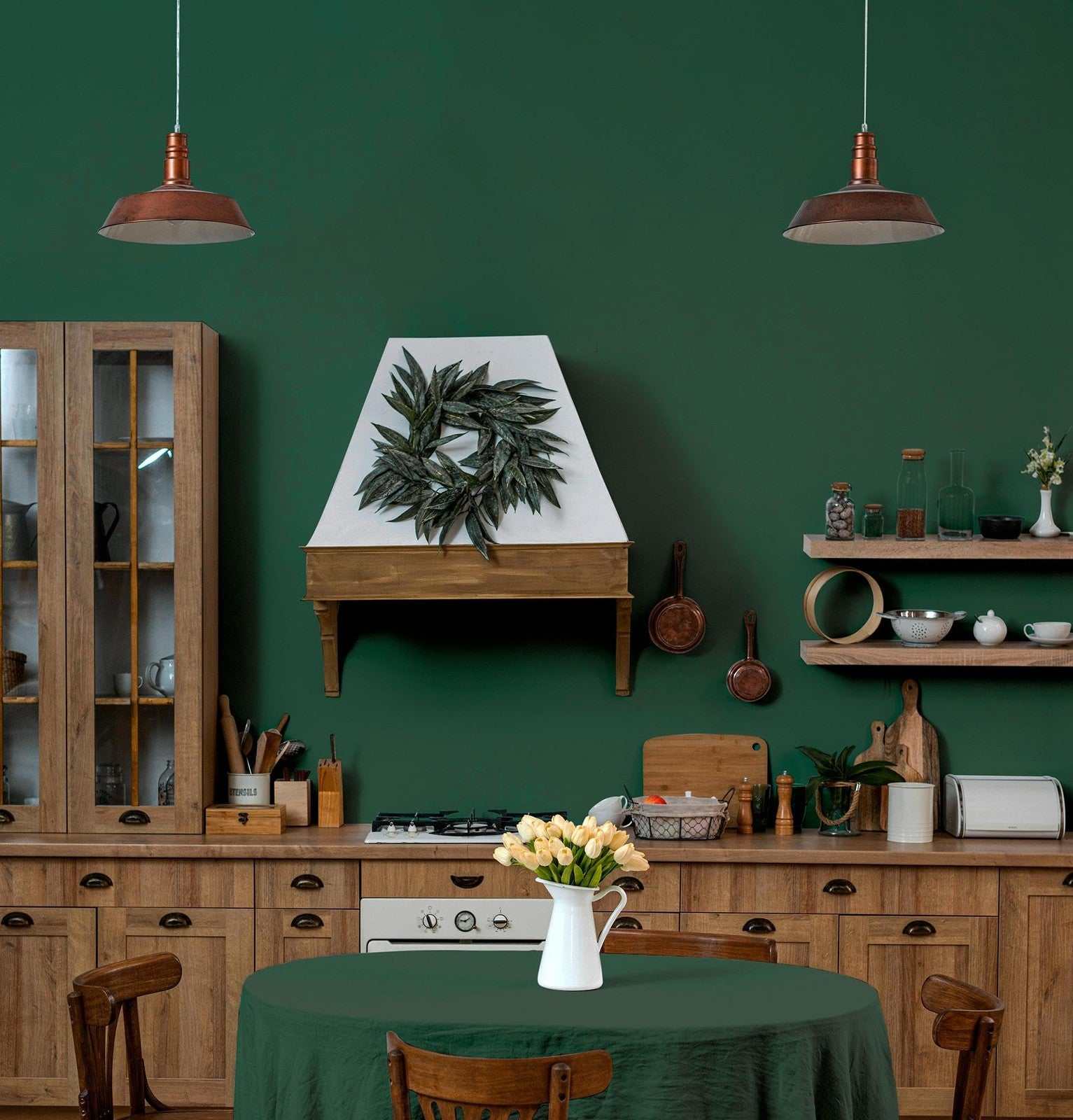HeloHo 394"x15.7" Solid Green Matte Textured Peel & Stick Contact Wallpaper