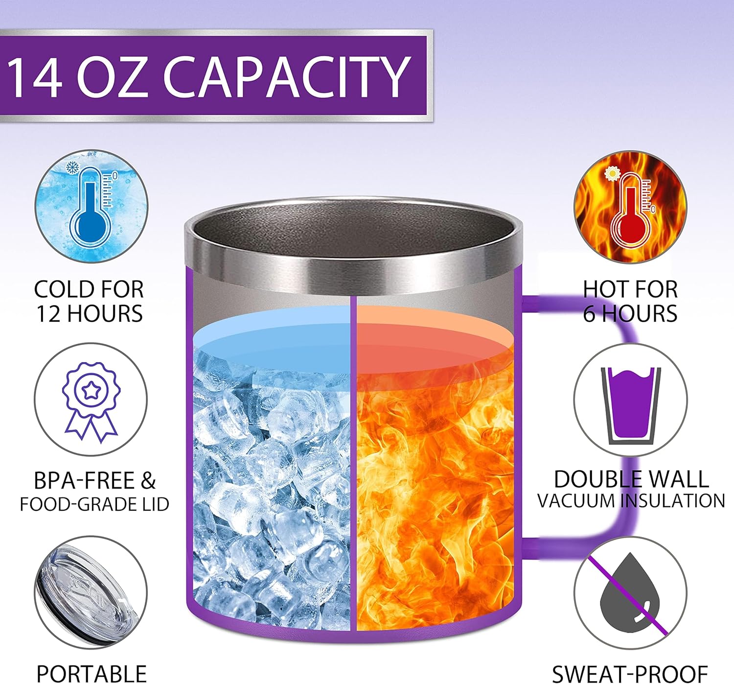 PREMIUM MATERIALS & HIGH QUALITY - Hexagram daughter 14 oz Tumbler is made of durable 18/8 stainless steel with double-wall vacuum insulation technology, it can keep your beverage hot for 6 hours and cold for 12 hours. The lid is made of BPA-Free, food-grade and recyclable materials. Based on ergonomic design, Hexagram Daughter Coffee Mug are non-slip and sweat proof, it fits most women's hands, as well as most car cup holders.