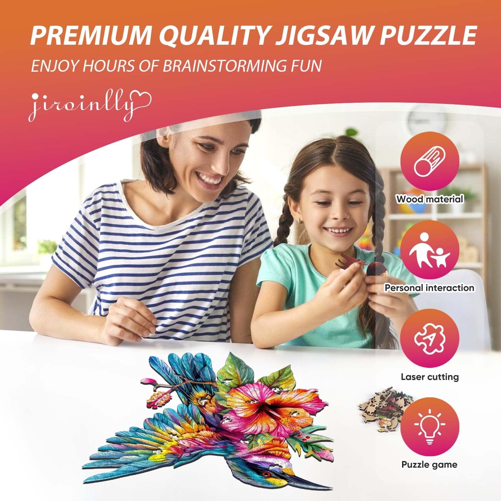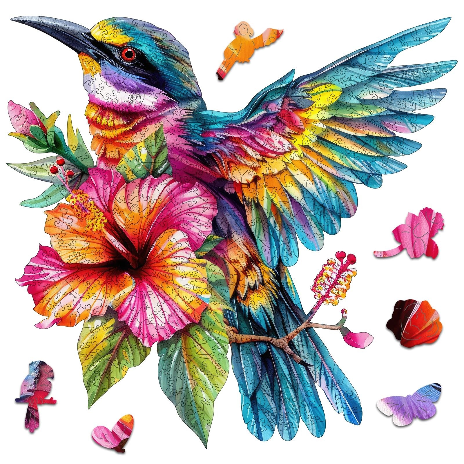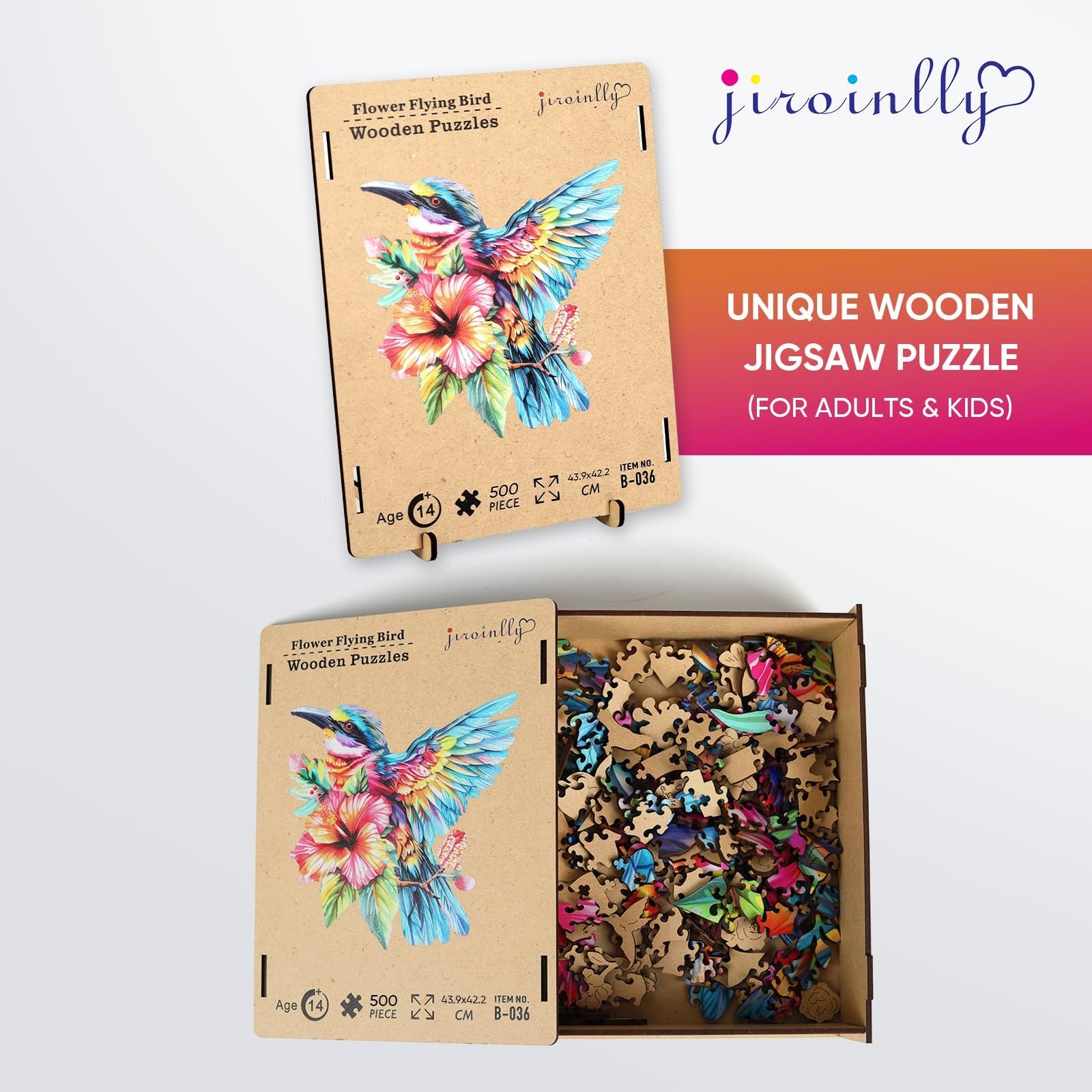 Jiroinlly Wooden Puzzles for Adults 500 Pieces, Colorful Hummingbirds and Flower