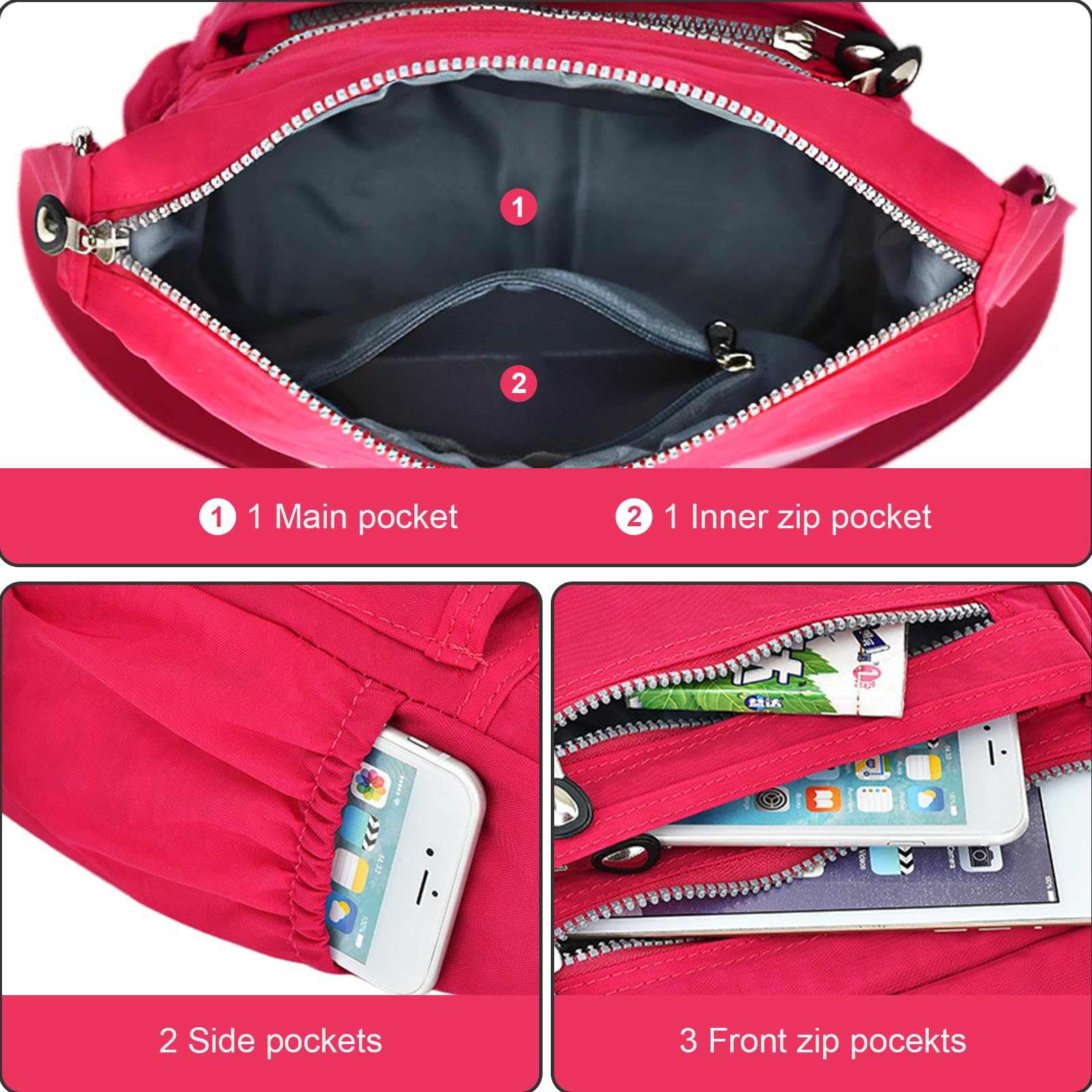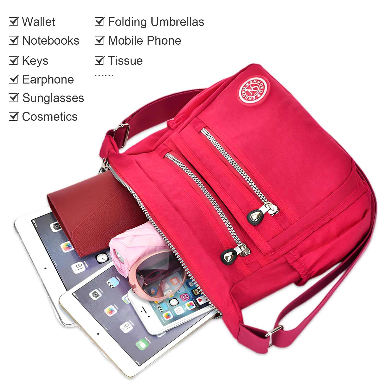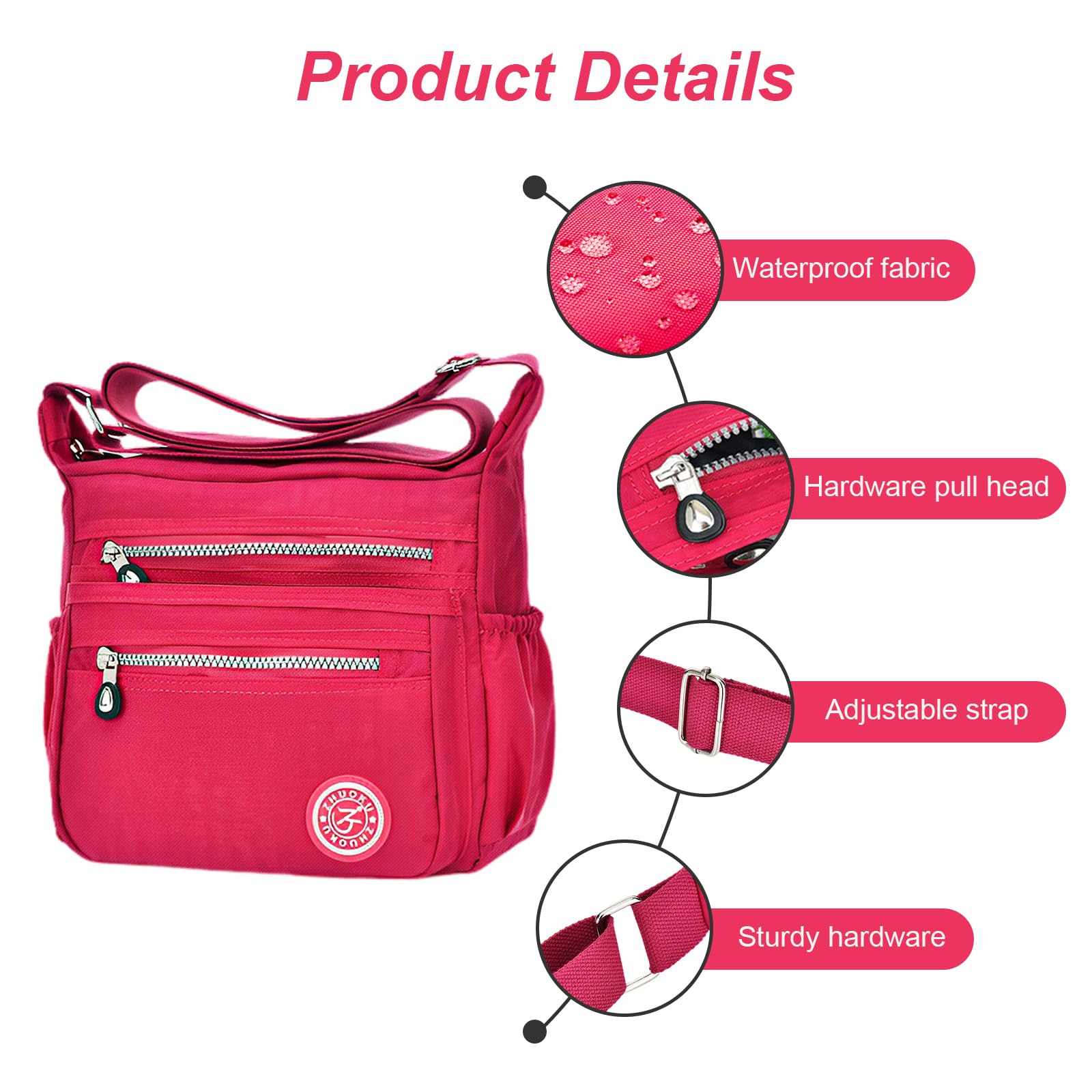 KXF Women's Waterproof Nylon Crossbody Shoulder Bag Travel Purse Handbag