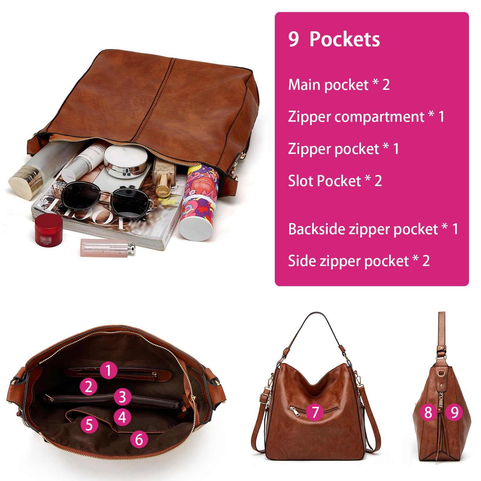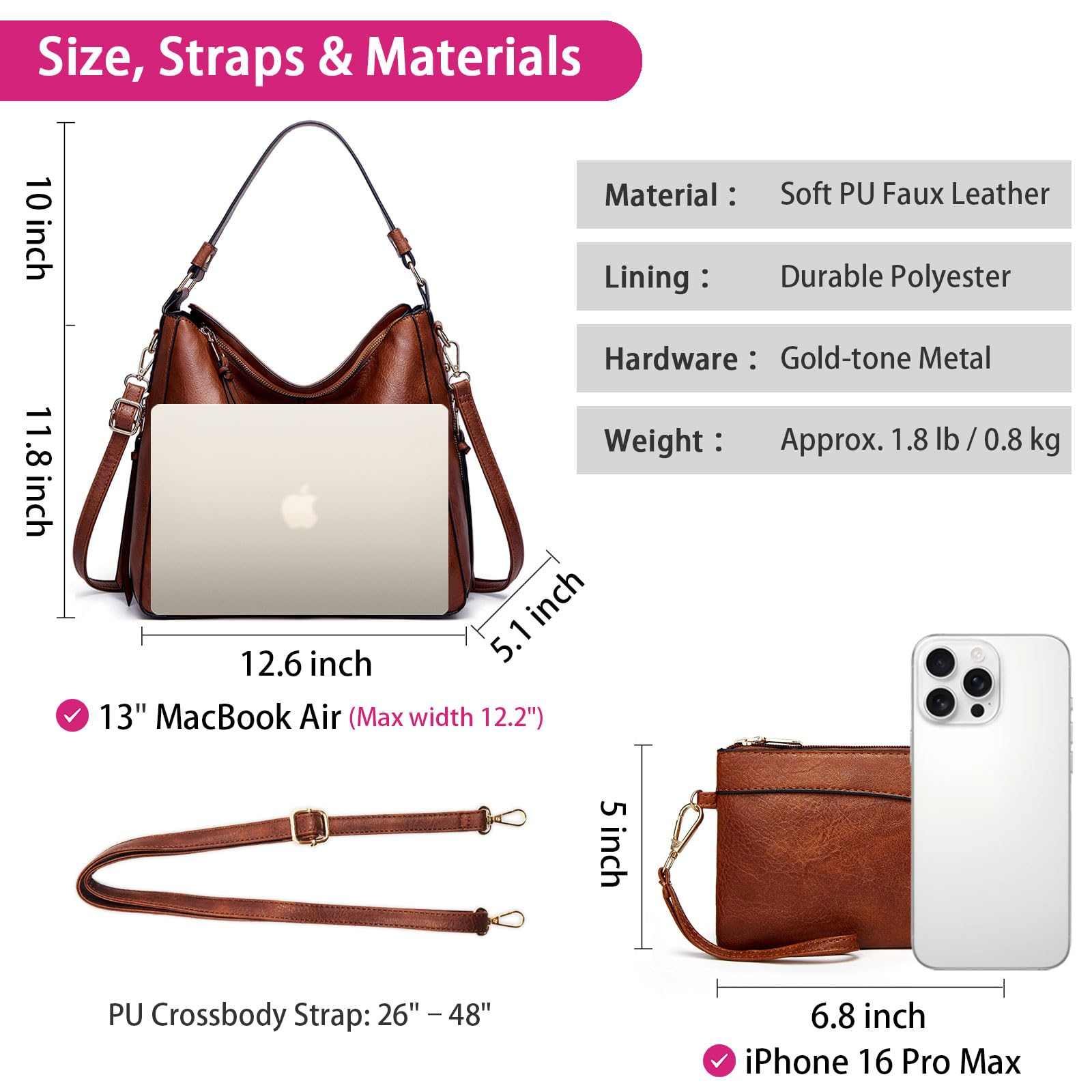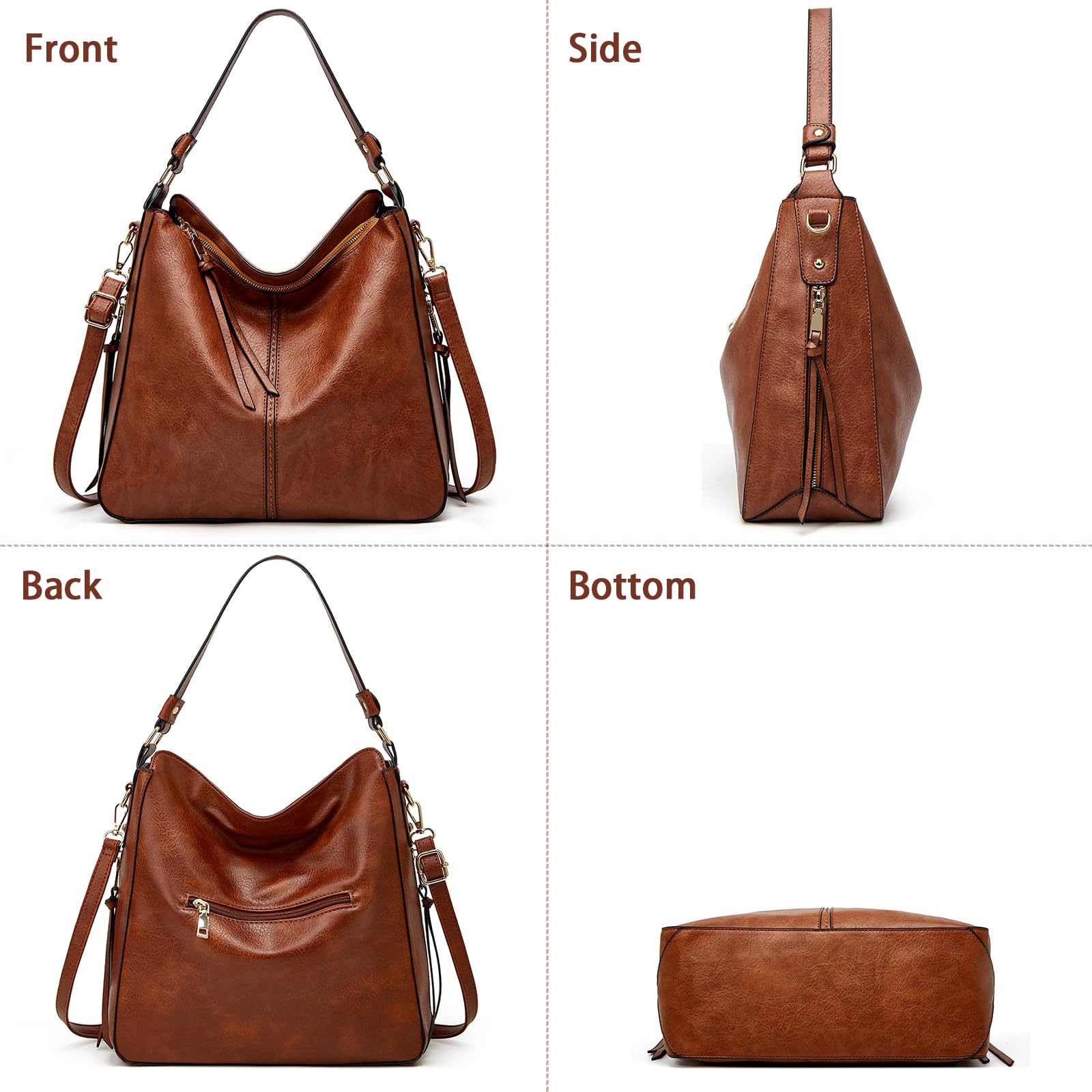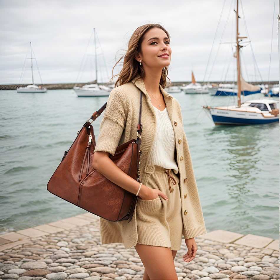 Large Capacity Hobo Tote Bag for Women, Soft Vegan Leather Crossbody Shoulder Ha