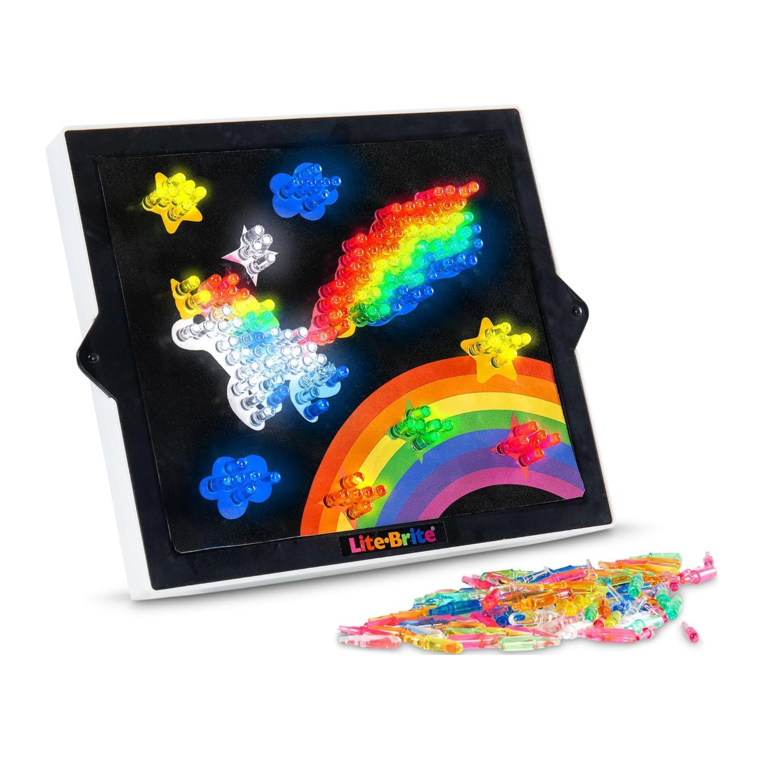 Unleash a world of endless creativity and light with the Lite-Brite Classic! This timeless toy is ready to captivate a new generation of kids with artistic freedom and fun. Kids and aspiring artists will love the hands-on fun of creating colorful designs, while parents can relive cherished memories from their own childhood. The Lite-Brite Classic isn’t just another toy - it’s a gateway to creative inspiration and imagination. This perfect blend of classic play and modern appeal makes the Lite-Brite Classic a must-have for family playtime!