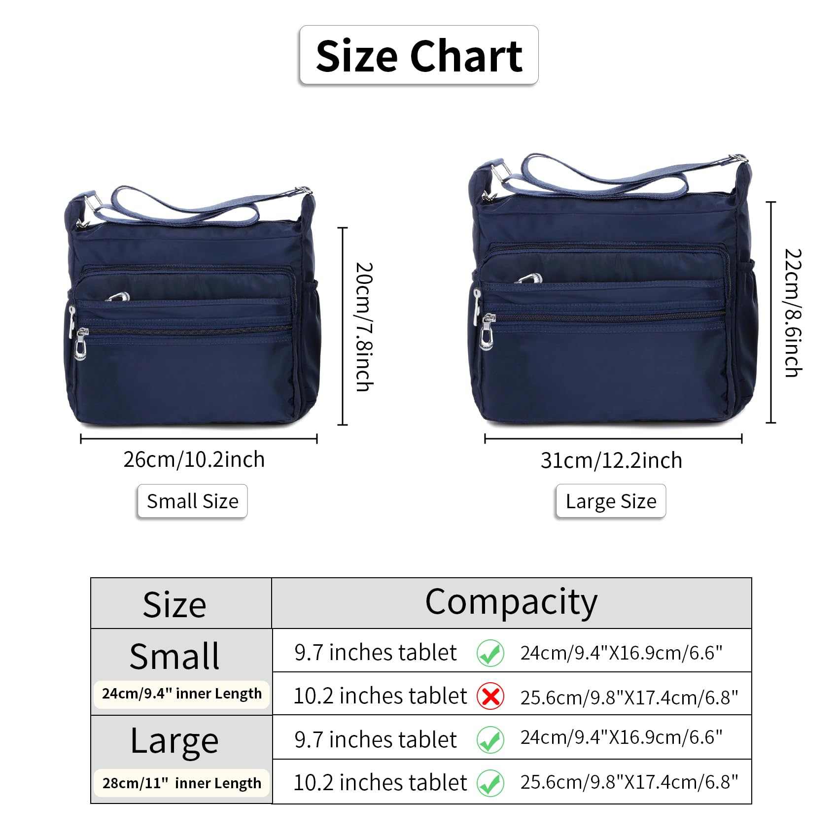 NOTAG Women's Waterproof Crossbody Shoulder Bag Messenger Handbag Casual - 2 Siz